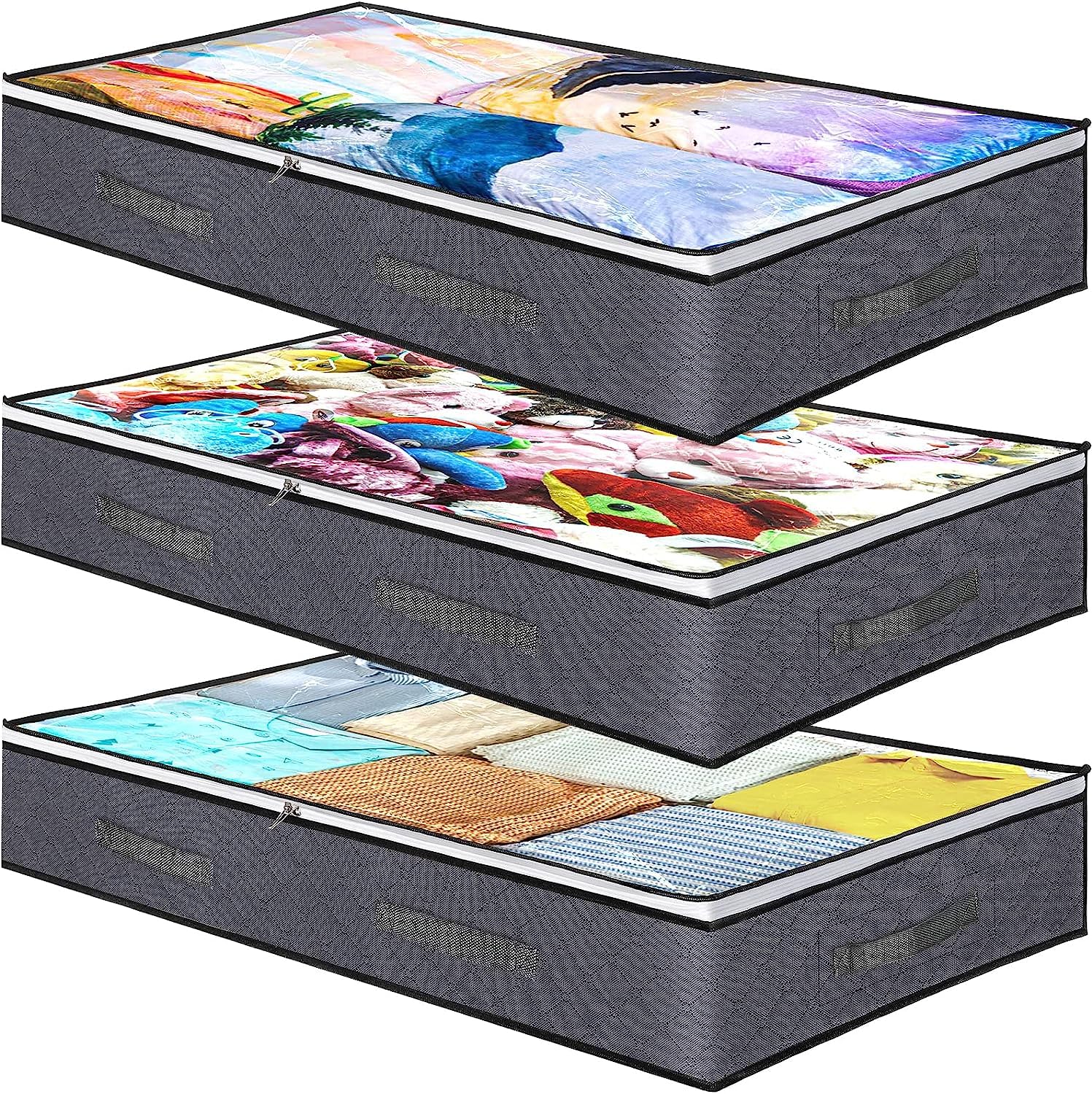 3 Pack Under Bed Storage Organizer Bags for bedroom, Large Capacity Clothing Containers, Foldable Underbed Storage Bins with Clear Window, 4 Reinforced Handles and Sturdy zipper for Blanket Toys