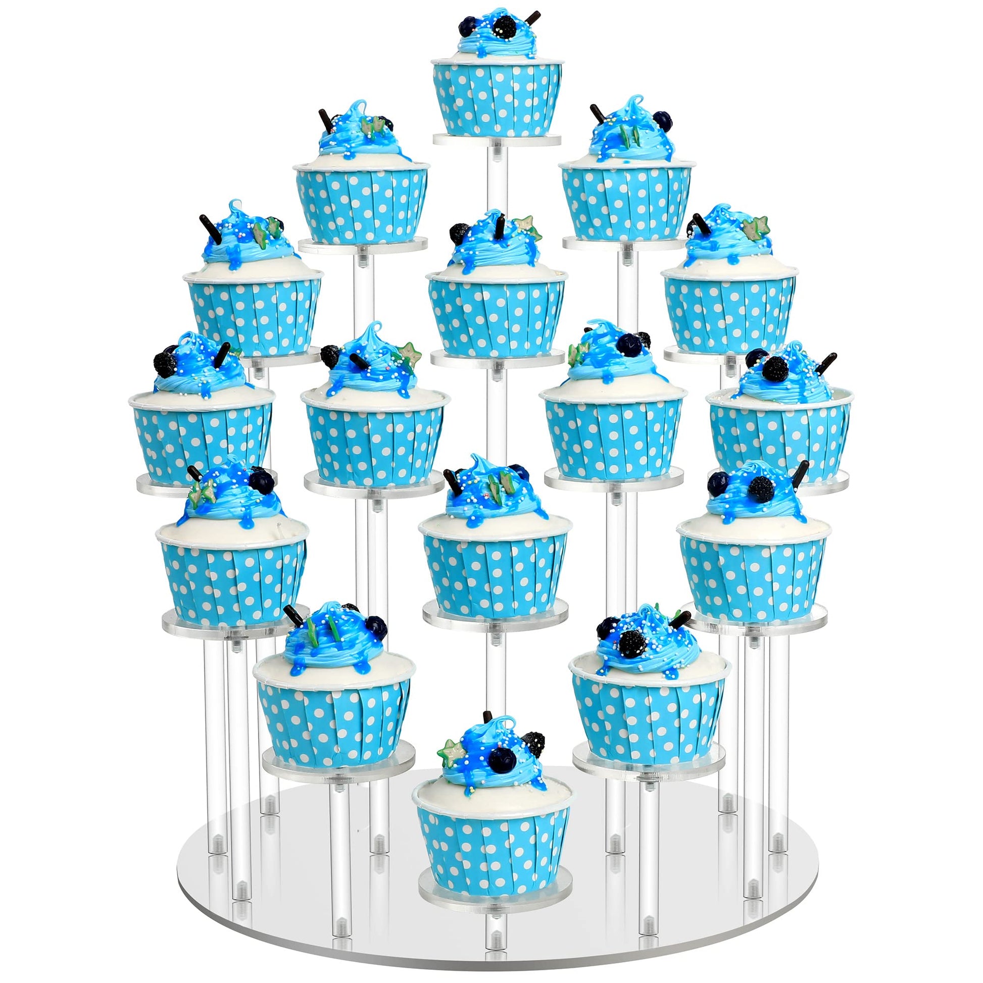 حامل عرض الكب كيك المصنوع من الأكريليك، يتسع لـ 16 كب كيك، حامل حلوى دائري شفاف 29.7 × 29.7 × 33 سم، طبق تقديم معجنات متعدد الطبقات لحفلات الزفاف وأعياد الميلاد والبوفيه