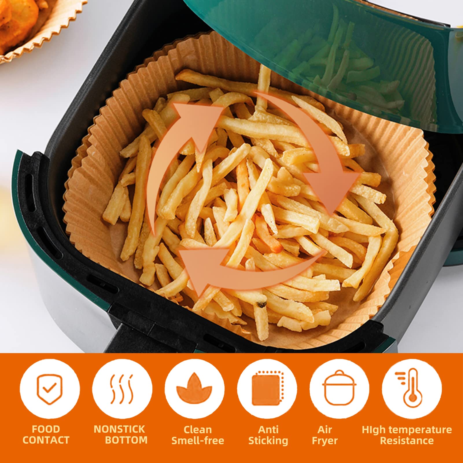 • 🥓【Easy to Use】The air fryer disposable paper liner is designed with a round bowl shape, which do not need to tear, fold, cut or bend, and just take one out and put it in your air fryer or microwave, then cook as you like