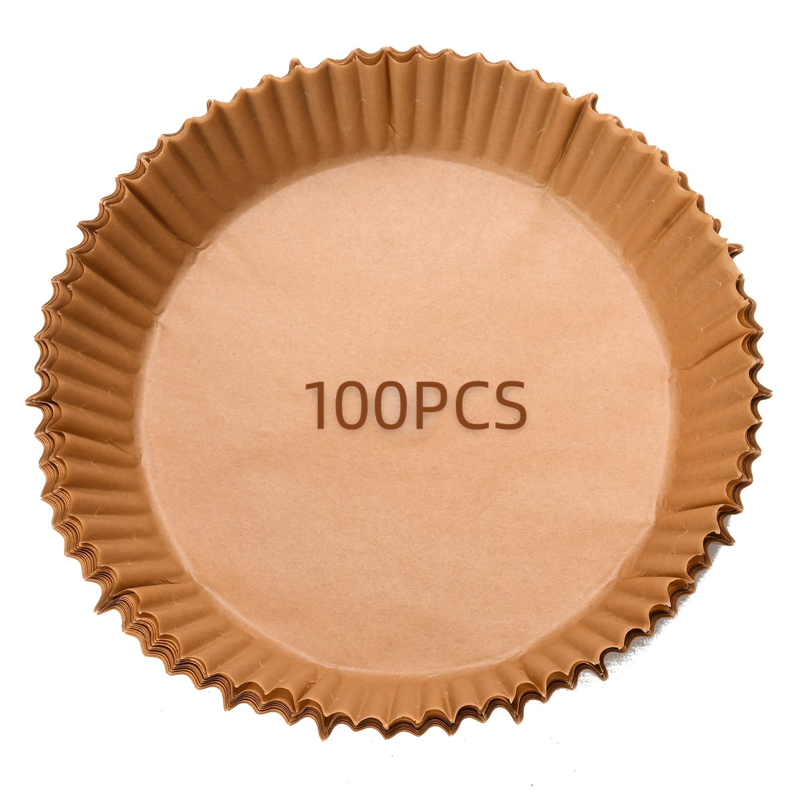 Air Fryer Disposable Paper Liners, Non-Stick Air Fryer Paper Liners for Baking, Round Food Grade Basket Waterproof Oil-Proof for Oven Microwave (100 Pcs 7.9 Inch)