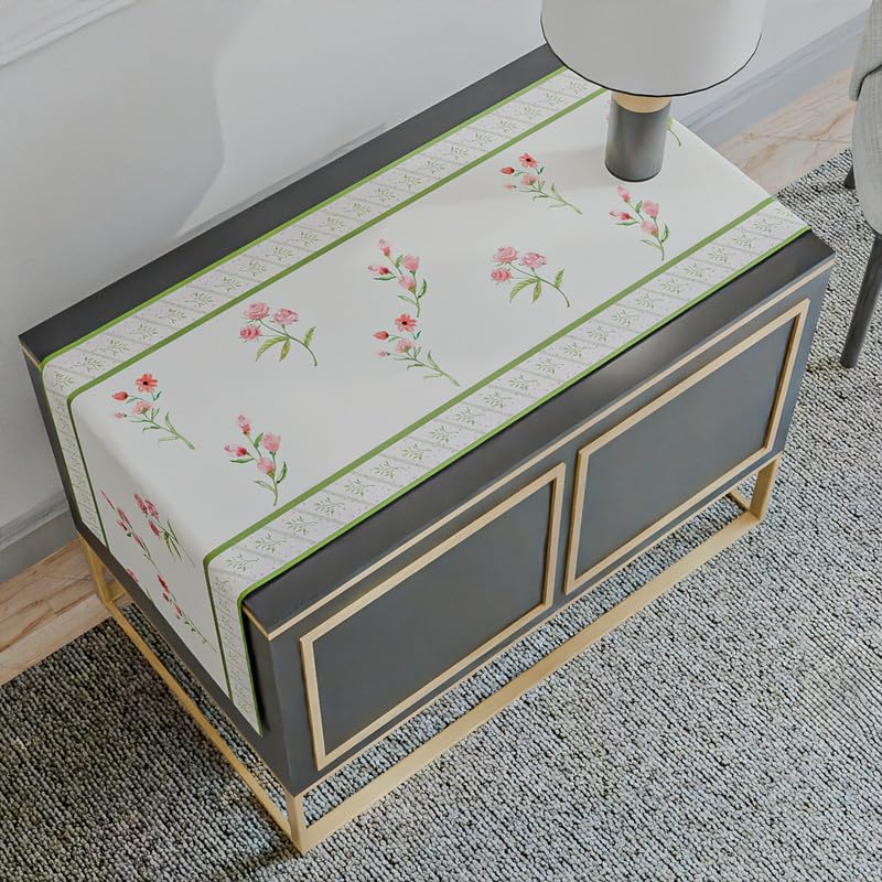 مفرش طاولة مخملي أزرق سماوي، قطعة مركزية مزخرفة فاخرة باللون الأبيض والوردي والأخضر، 35×140 سم، بملمس فاخر وتصميم زهور جميل لتعزيز طاولة الطعام الخاصة بك