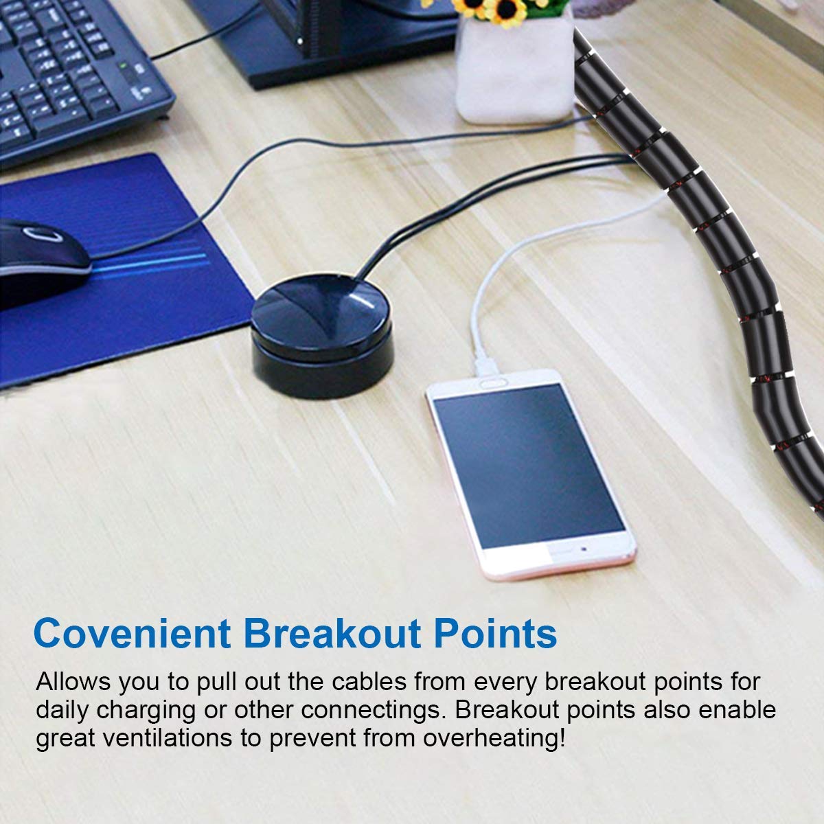 • 【Unique Breakpoint&DIY Length】Pull out the cables from every breakout point is convenient for daily charging or other connecting.The breakout points on the bundler provide great ventilation to prevent them from overheating!Flexible material allows customize length as you wanted from the 2M/78.8inch cable wires organizer.