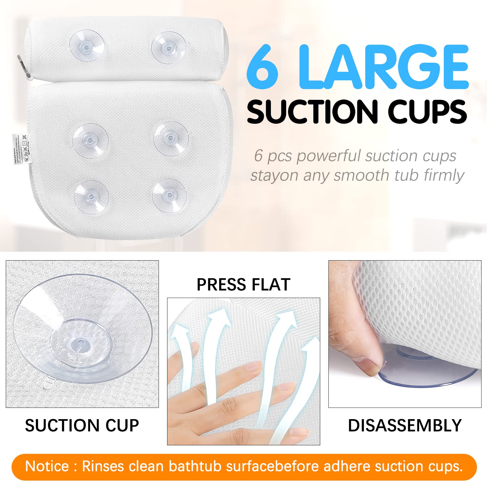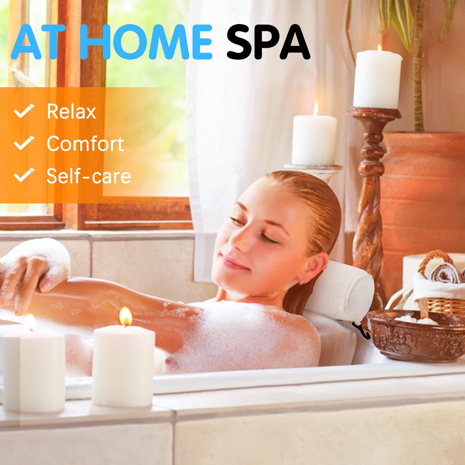 • EASY TO USE AND CLEAN - Our premium spa pillow specially adopts open weave mesh material, allows water & air to flow through for quick drying, prevents bad odor from forming in and around your pillow. It is easy to clean by hand washing your pillow with cold water and gentle detergent. With convenient built-in hanging hook for easy drying or storage.