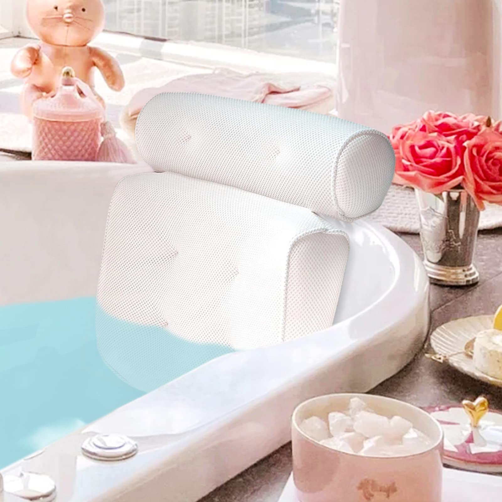 COALA HOLA Bath Pillow Bathtub Spa Pillow, Non-Slip 6 Large Suction Cups, Extra Thick Bath Pillow for Head, Neck, Back and Shoulder Support, Fits All Bathtub, Hot Tub-White