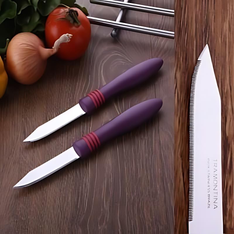 طقم سكاكين الفاكهة والخضروات من كور آند كور، قطعتان - شفرات حادة للغاية من الفولاذ المقاوم للصدأ ومقابض مريحة من البولي بروبيلين بلون أرجواني فاتح - قطع دقيق لتحضير الطعام في المطبخ