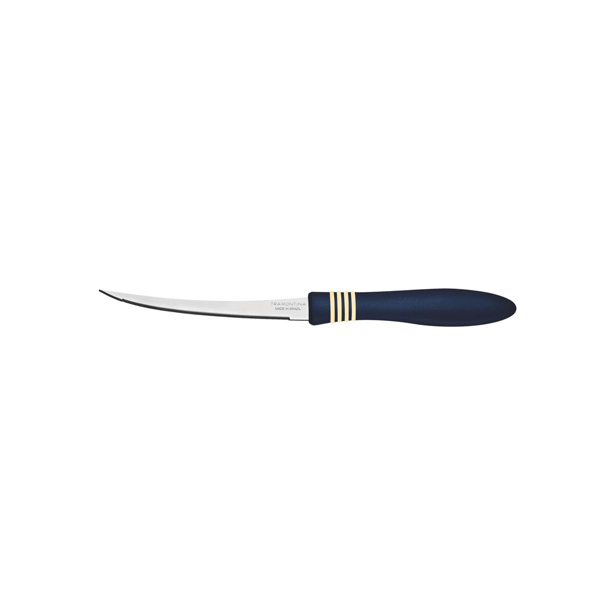 سكين الطماطم Cor & Cor مقاس 5 بوصات - شفرة مسننة من الفولاذ المقاوم للصدأ بمقبض أزرق من البولي بروبيلين - حادة ومتينة ودقيقة لتقطيع الطماطم والفواكه الطرية - قطعة واحدة