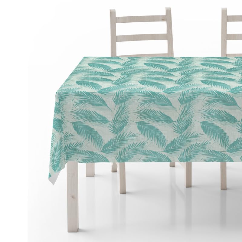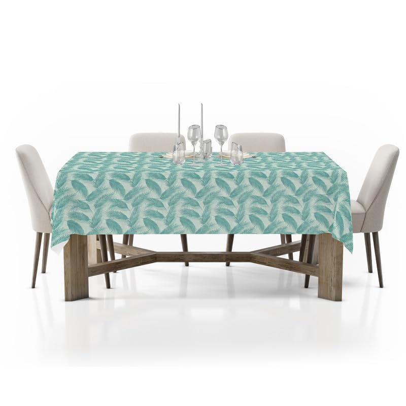 INTEX HOME Linen Velvet Table Cloth, Bella Leaf Pattern, Premium Soft Fabric, 130W×130L CM, Turquoise, Elegant Dining and Living Room Decor, Durable Protection for Daily Use and Special Occasions