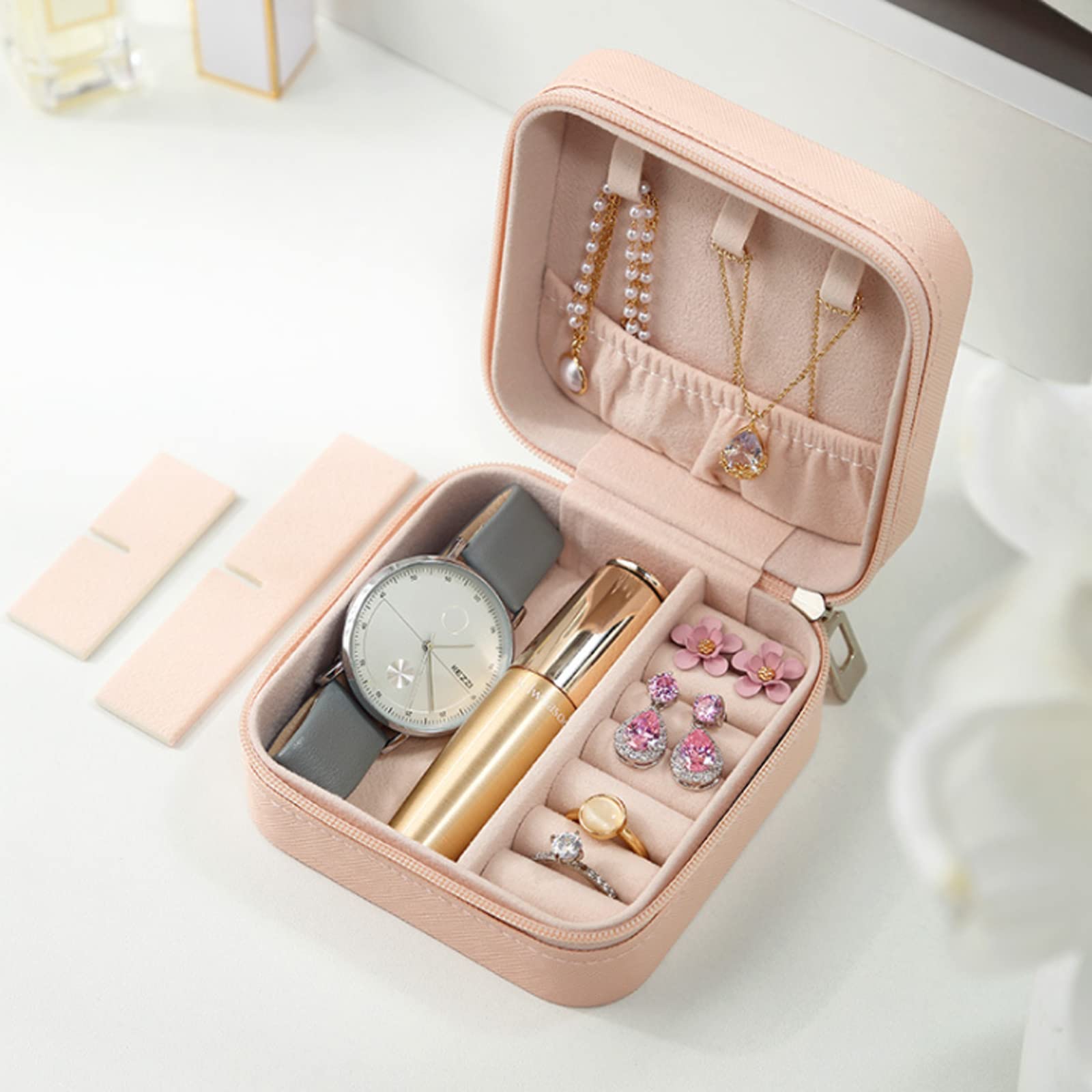 • تخزين ذكي: حجرات متعددة للخواتم والأقراط والقلائد.
