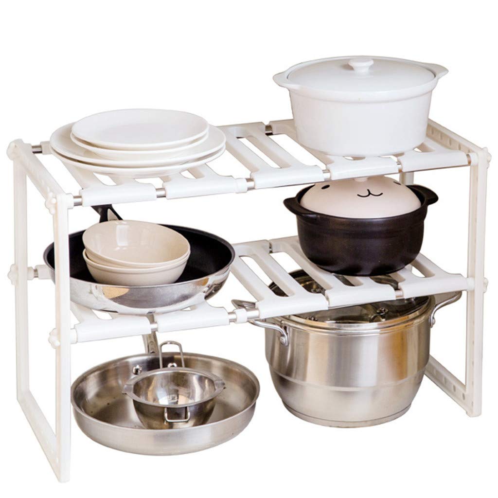 رف أطباق حوض المطبخ، منظم تخزين قابل للتعديل من طبقتين أسفل الرف، حامل رف عالي التحمل لمستلزمات المطبخ الأساسية، تصميم أبيض موفر للمساحة لأسطح العمل والخزائن