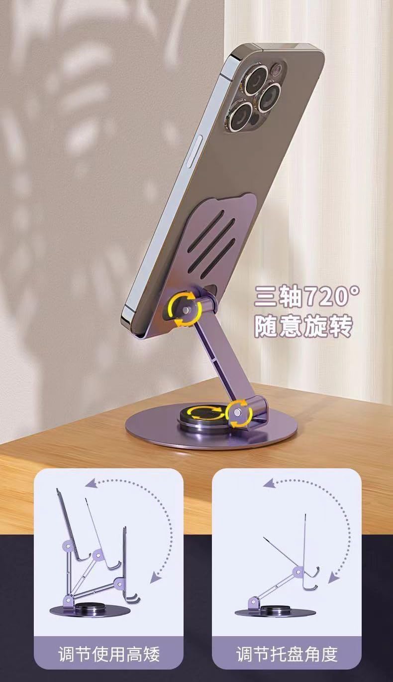 • ✅Metal 360°Rotation: Featuring a 360° rotatable axis connecting with the base, this cell phone stand allows you to swivel your phone to any angle.