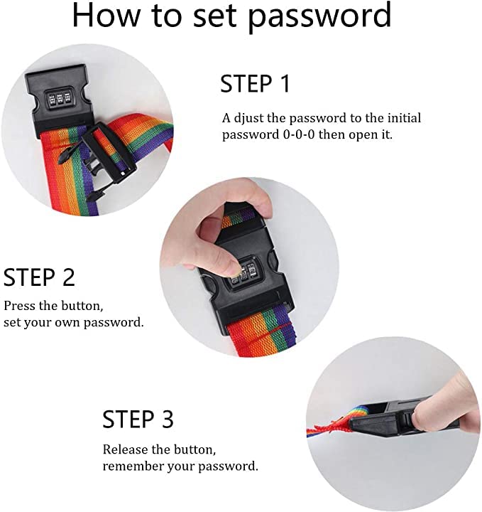 Luggage Suitcase Strap with Coded Lock Secure Lock Safe Belt Strap 1.7m baggage Belt Travel Rainbow Adjustable, Multi Color