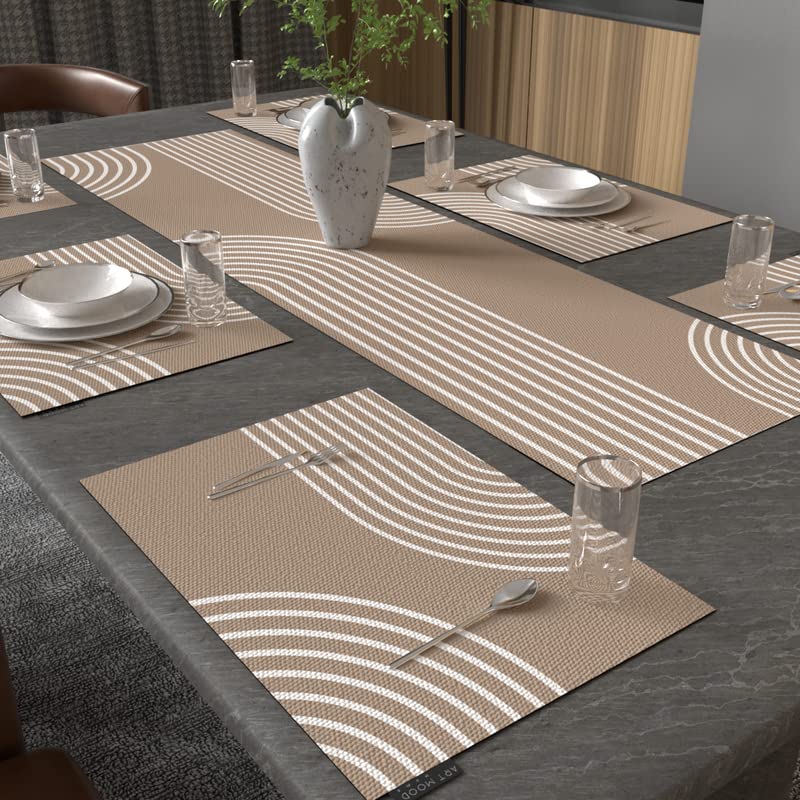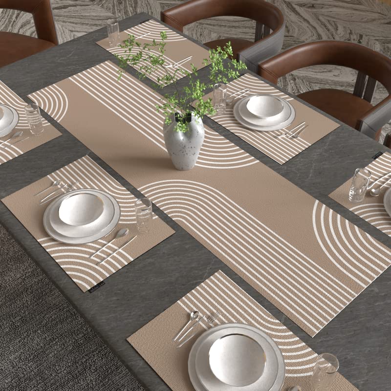 - 6 قطع من مفارش الطاولة والممر في مجموعة واسعة من الألوان، يمكنك بسهولة العثور على خيار وأسلوب ينسق مع غرفة الطعام الخاصة بك.