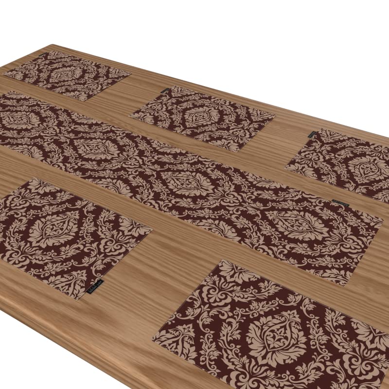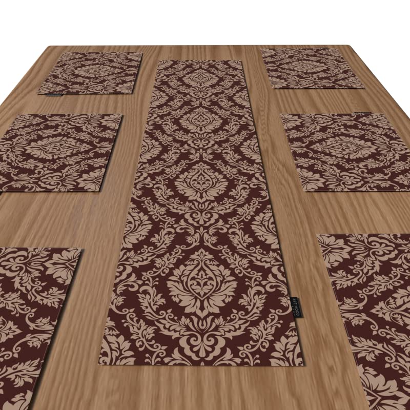 مجموعة من 6 مفارش طاولة من القماش من تصميم مارون صوفيا باللونين العنابي والبني، كل منها بمقاس 45×30 سم، متينة وقابلة للغسل بنمط غني وأنيق لبيئة طعام دافئة ومتطورة.