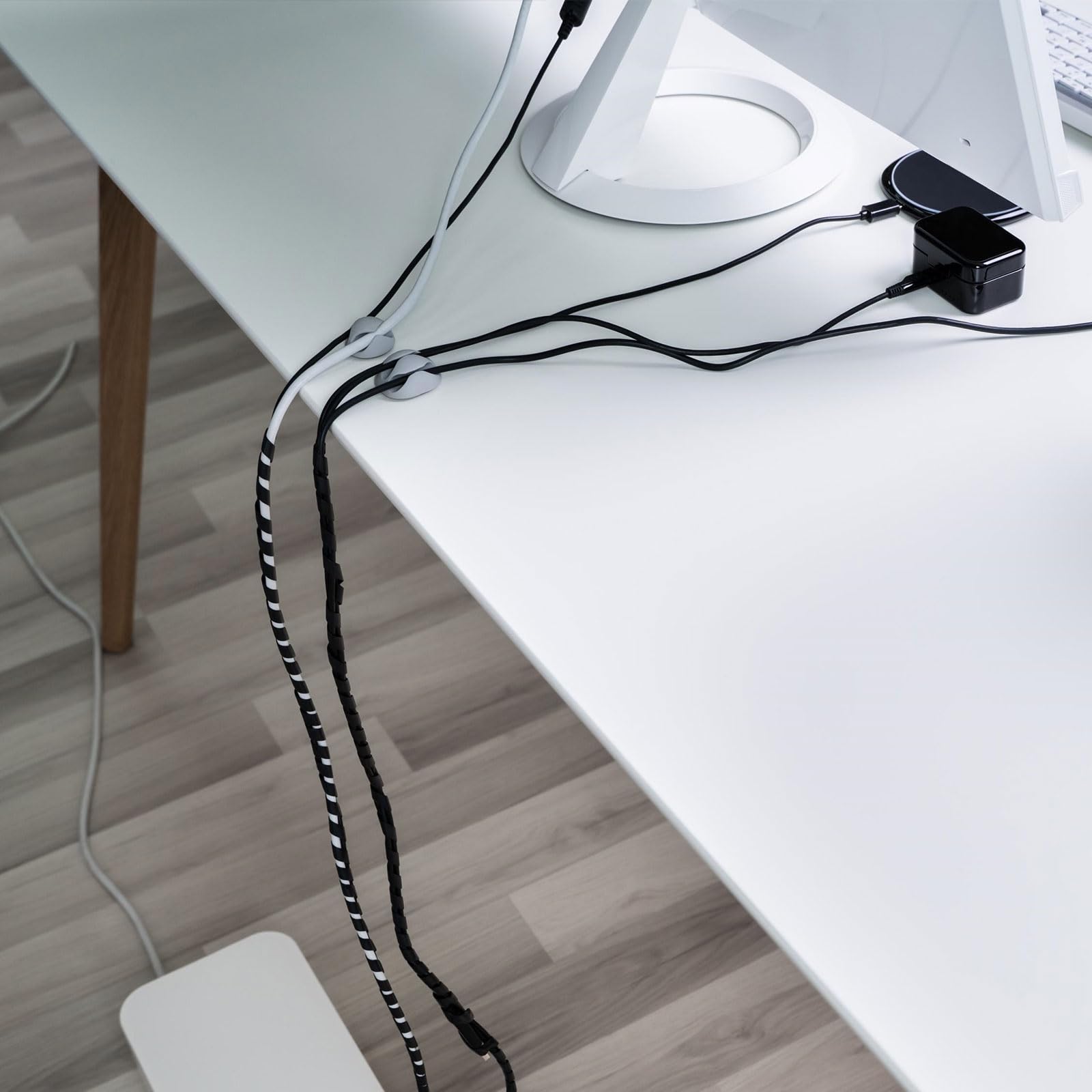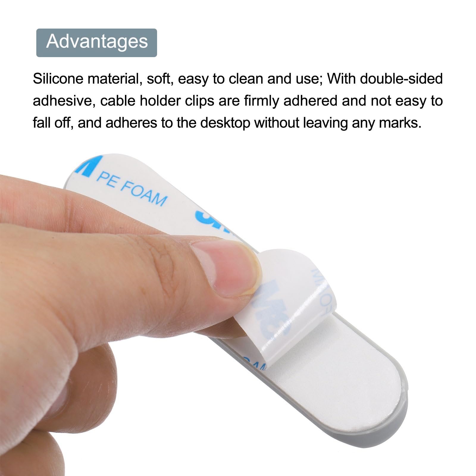 • Silicone material, soft, easy to clean and use; With double-sided adhesive, cable holder clips are firmly adhered and not easy to fall off, and adheres to the desktop without leaving any marks; The slot design allows for easy and quick insertion or removal of electrical wires, firmly gripping the cord and keeping them from falling off easily