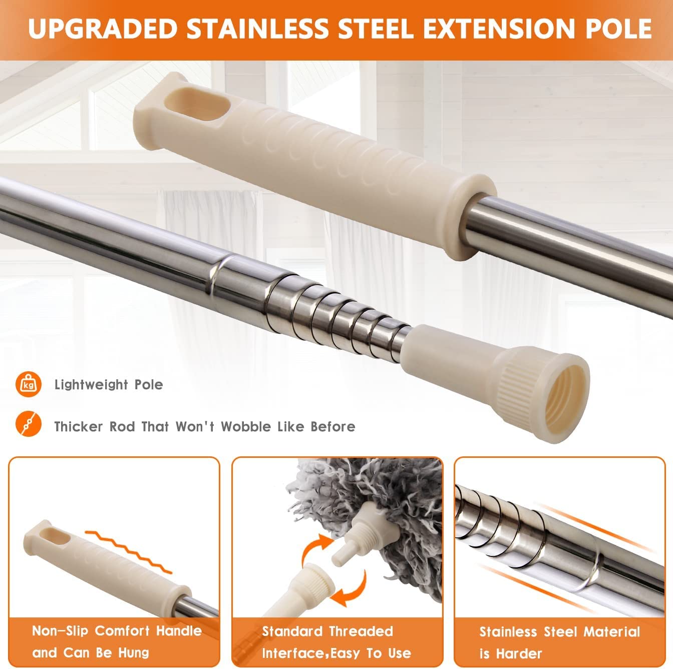 منفضة ريش من الألياف الدقيقة - منفضة قابلة للثني والتمدد مع عمود من الفولاذ المقاوم للصدأ قابل للتمدد بطول 254 سم لمراوح السقف وستائر النوافذ والأثاث والأسقف العالية