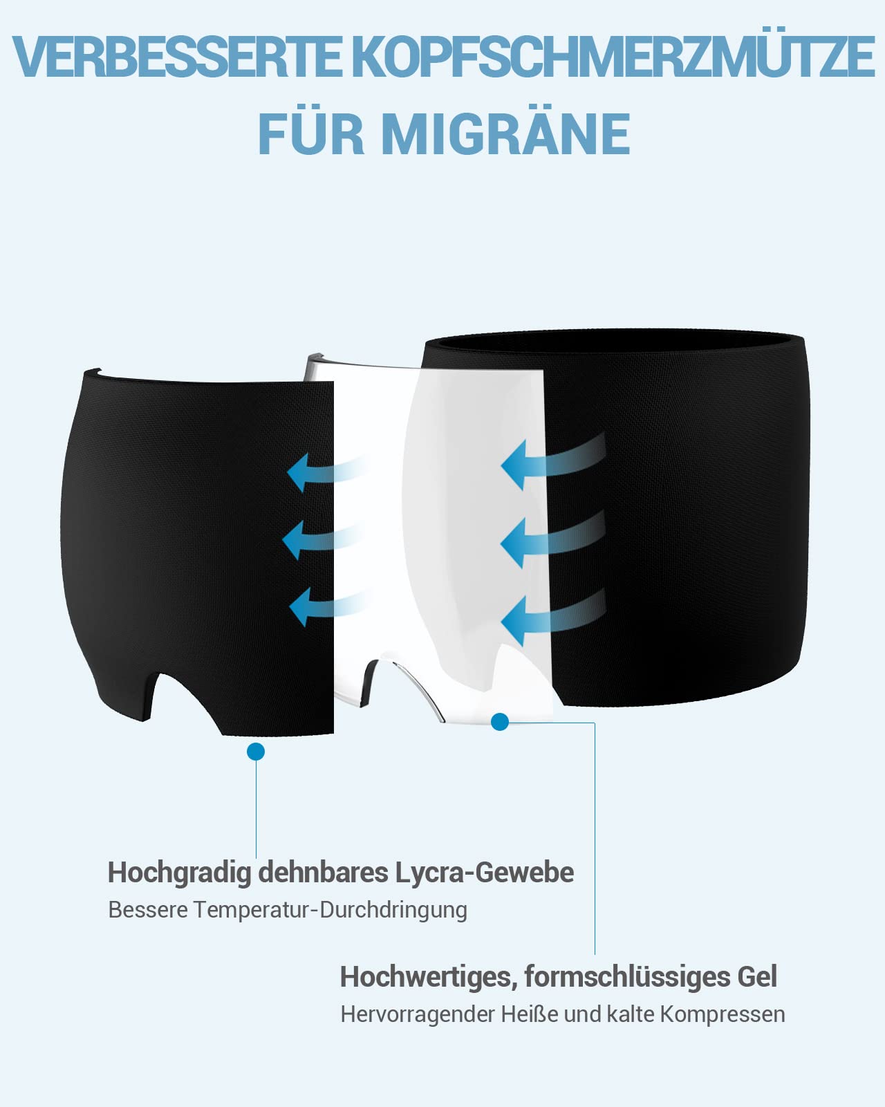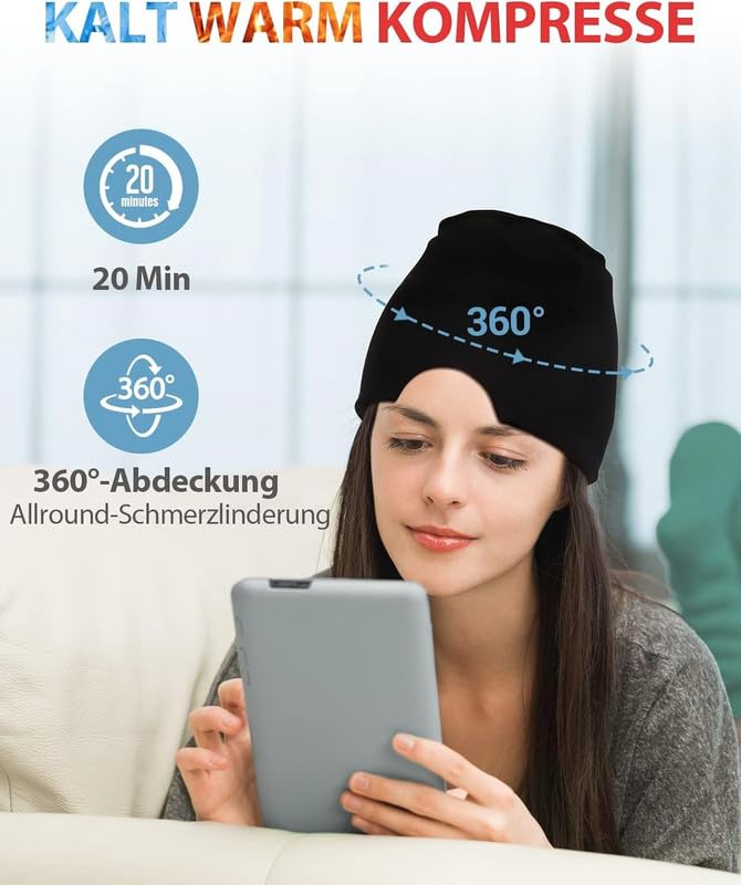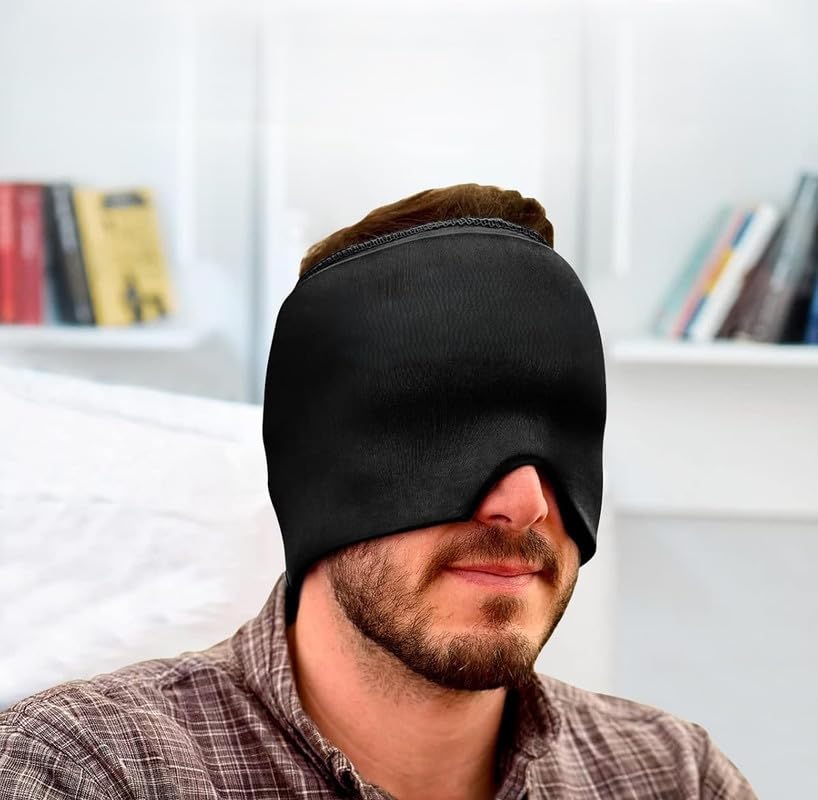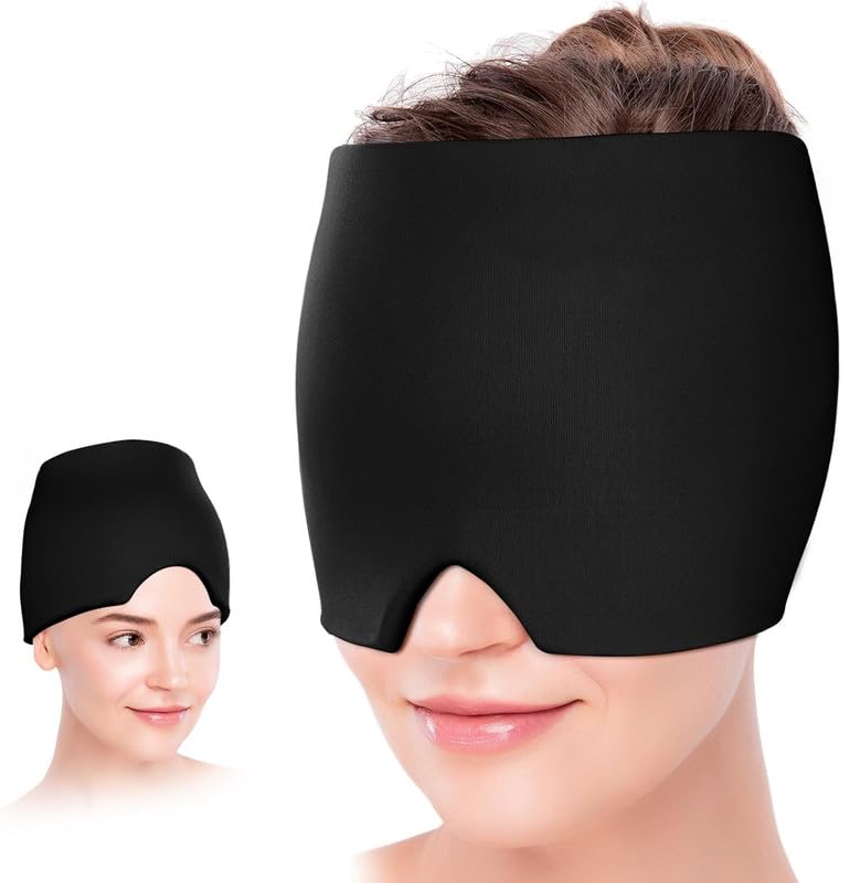 قناع جل لتخفيف الصداع النصفي، قبعة علاجية قابلة للتمدد والتبريد، غطاء ثلج ضاغط لتخفيف الصداع، قناع نوم للعين لتخفيف الصداع النصفي والتوتر وآلام الجيوب الأنفية