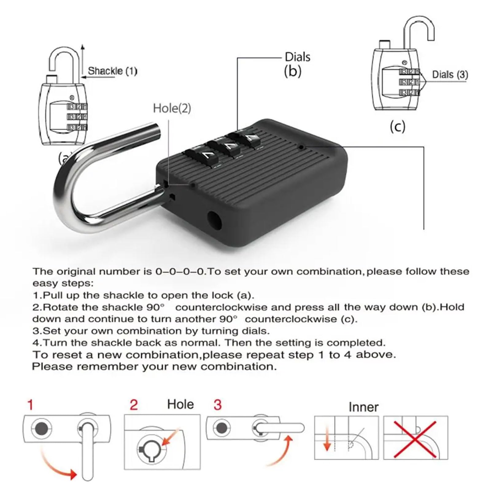 • Security: 3-digit set your own combination convenience allows for thousands of possible combinations for added security. The lock's original password is 0-0-0.