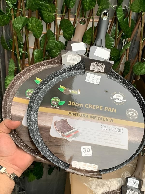 مقلاة كريب من الجرانيت غير قابلة للخدش - سطح متين غير لاصق للفطائر والكريب والأومليت والمزيد - خفيفة الوزن وسهلة التنظيف وتوزيع متساوٍ للحرارة - قطعة واحدة