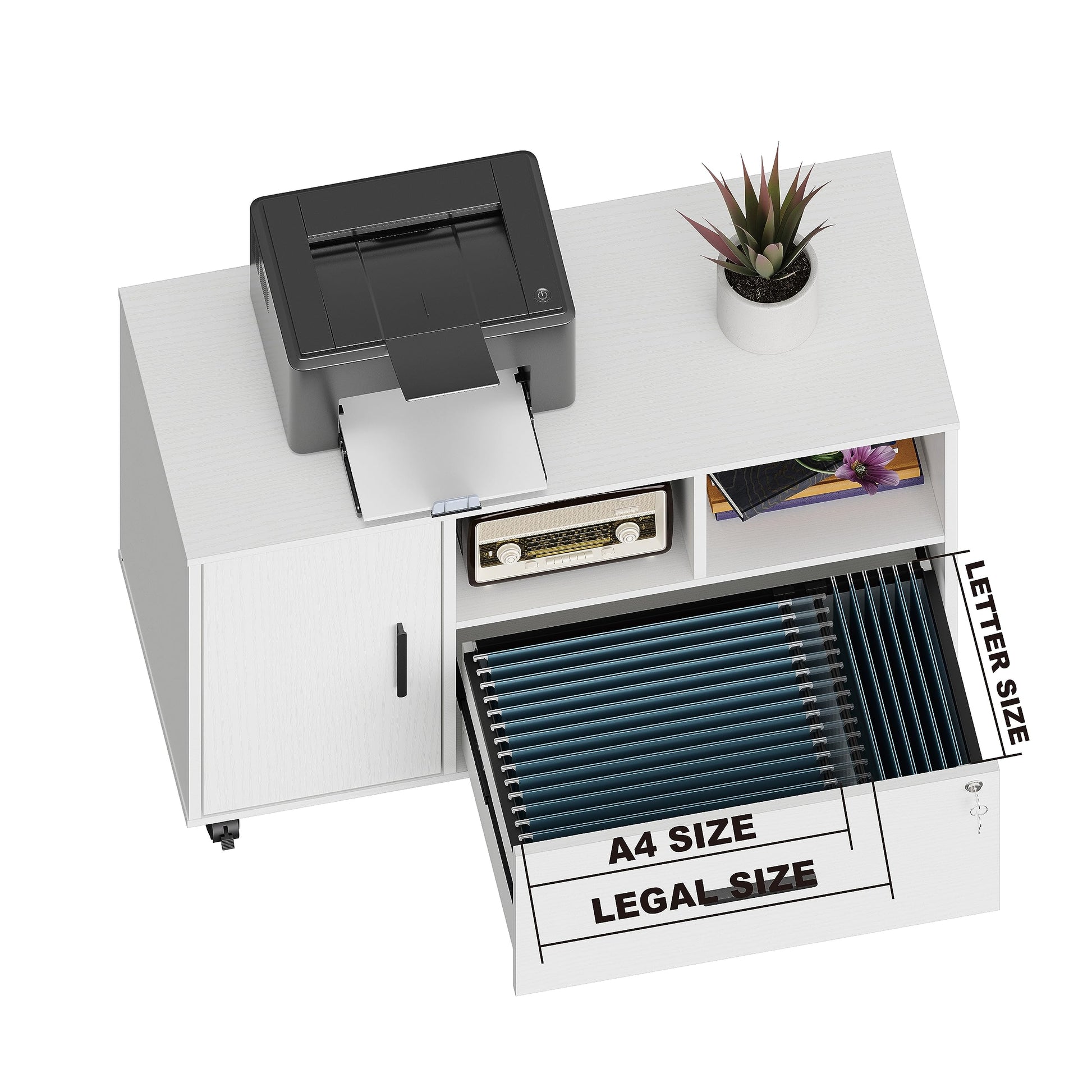 Office File Cabinet with Lock in White, 2-Drawer Mobile Pedestal with Wheels, Under-Desk Filing Cabinet for Home Office, Secure Document Storage with Key, Modern Design
