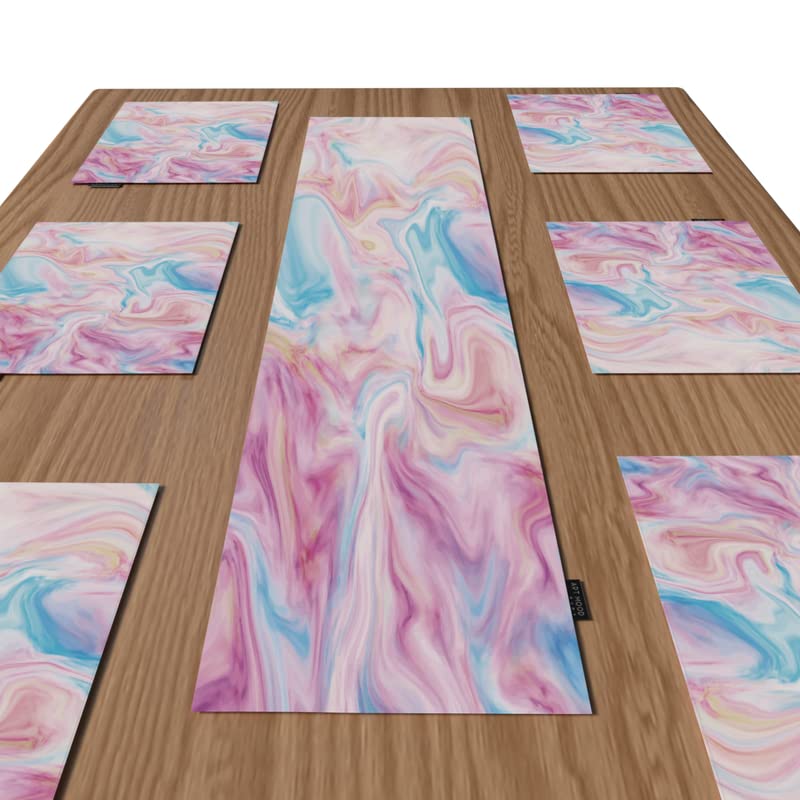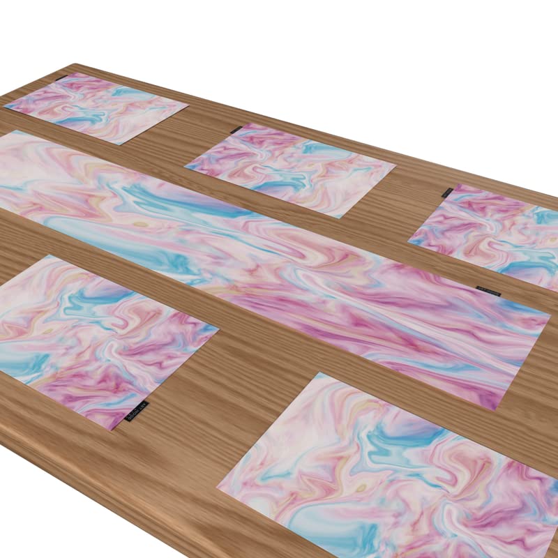 مجموعة مفارش طاولة من القماش الرخامي من بينكي، مكونة من 6 قطع، متعددة الألوان، كل قطعة 45×30 سم، متينة وقابلة للغسل بتصميم رخامي وردي عصري لإضفاء لمسة جمالية أنيقة وعصرية على طاولة الطعام
