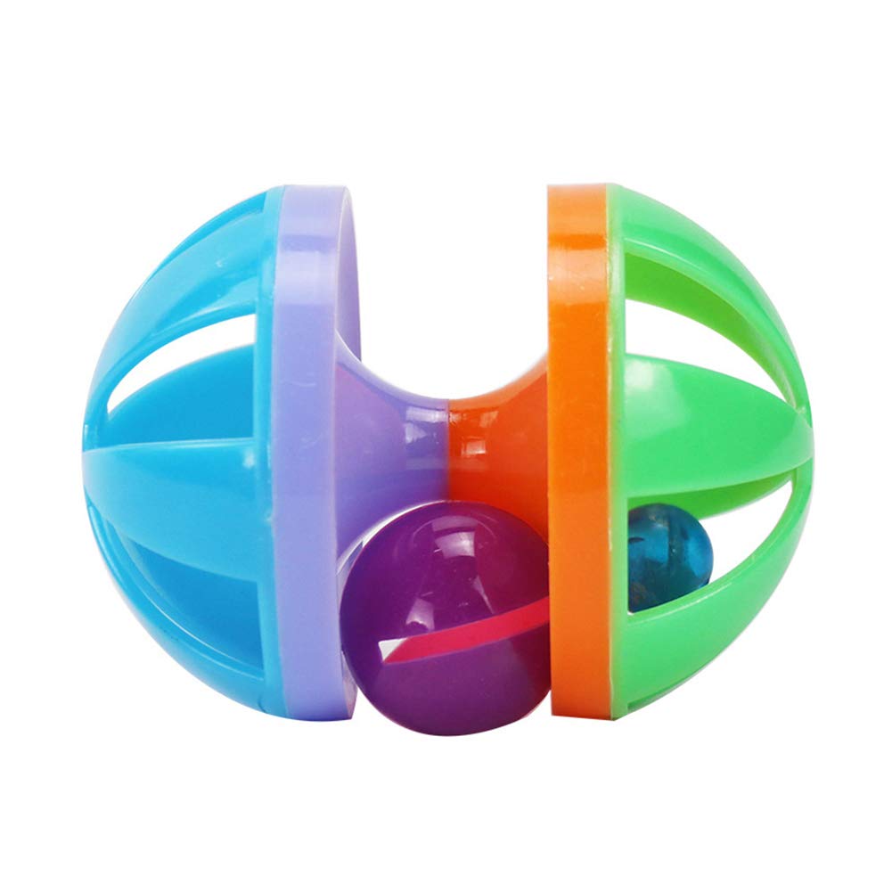 لعبة مضغ القطط على شكل كرة دوارة بلاستيكية مع جرس، تصميم متين وتفاعلي، تمرين ممتع وترفيه للقطط الصغيرة والقطط البالغة، لعبة خفيفة الوزن متعددة الألوان