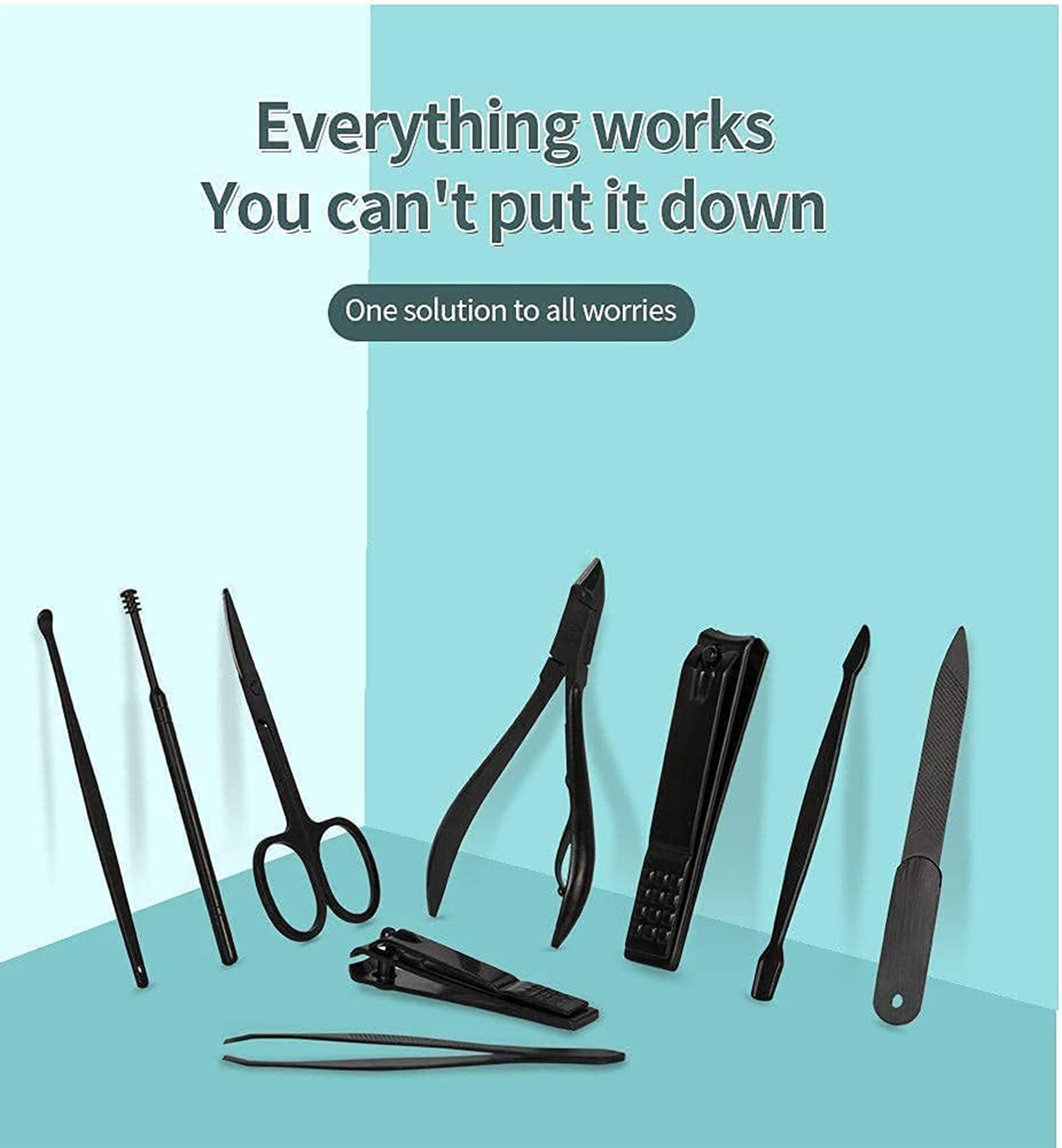 Profession Nail Clippers Set 18 pcs?Black Stainless Steel Sharp Nail Trimmer Pedicure and Manicure Set with Cortex Metal Case for Men and Women