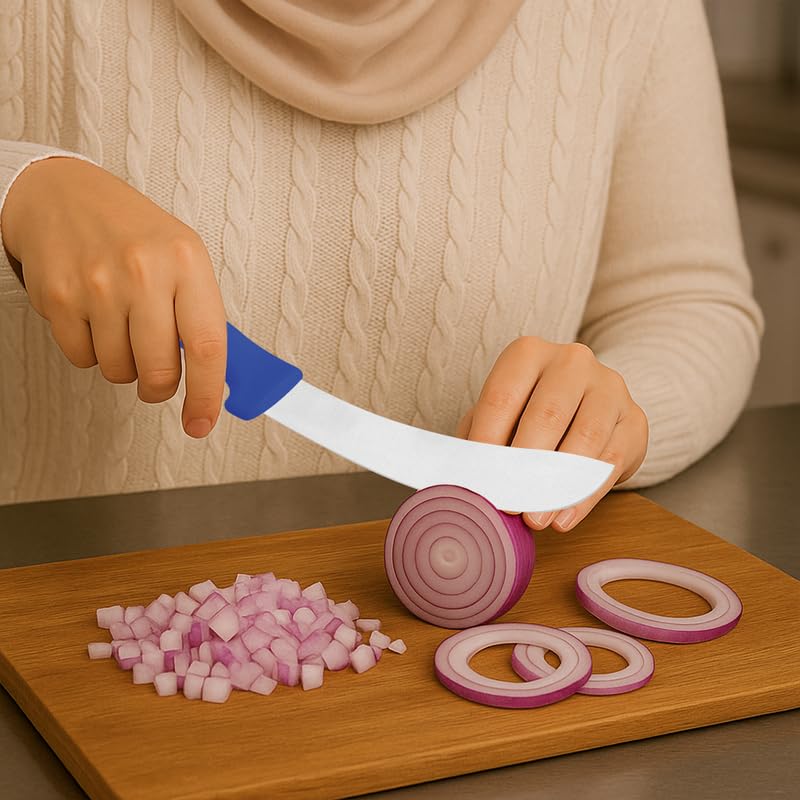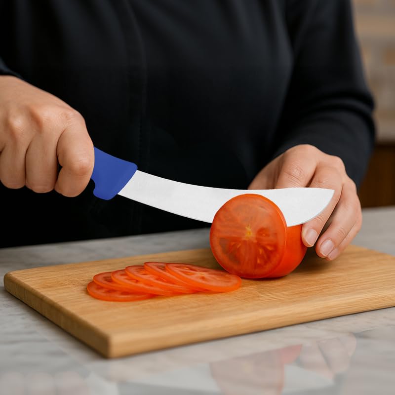 • تحتفظ الشفرة الحادة المصنوعة من الفولاذ المقاوم للصدأ بحافتها لفترة أطول، مما يجعلها مثالية للتقطيع والتقطيع إلى مكعبات والتقطيع ومجموعة متنوعة من مهام المطبخ اليومية.