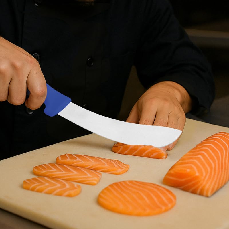 سكين سلخ احترافي - شفرة من الفولاذ المقاوم للصدأ مقاس 7 بوصات مع مقبض من البولي بروبيلين أزرق اللون - حادة ومتينة