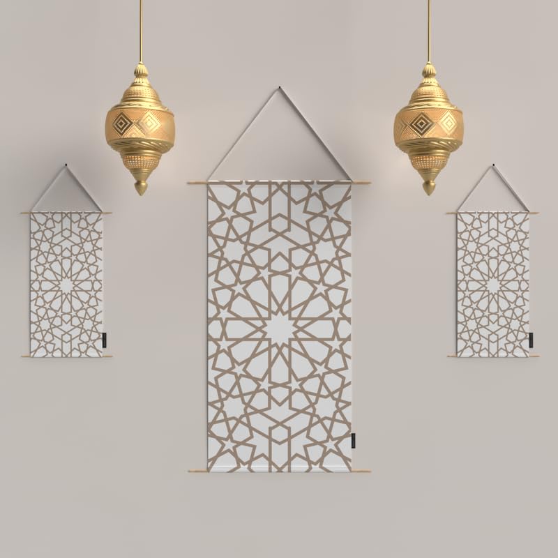 مجموعة ملصقات قماشية مخملية فريدة من نوعها لشهر رمضان، مجموعة ديكور حائطي لديكور المنزل الاحتفالي، باللونين البيج والأبيض، تصميم إسلامي مستوحى من السماء لغرفة المعيشة أو غرفة النوم