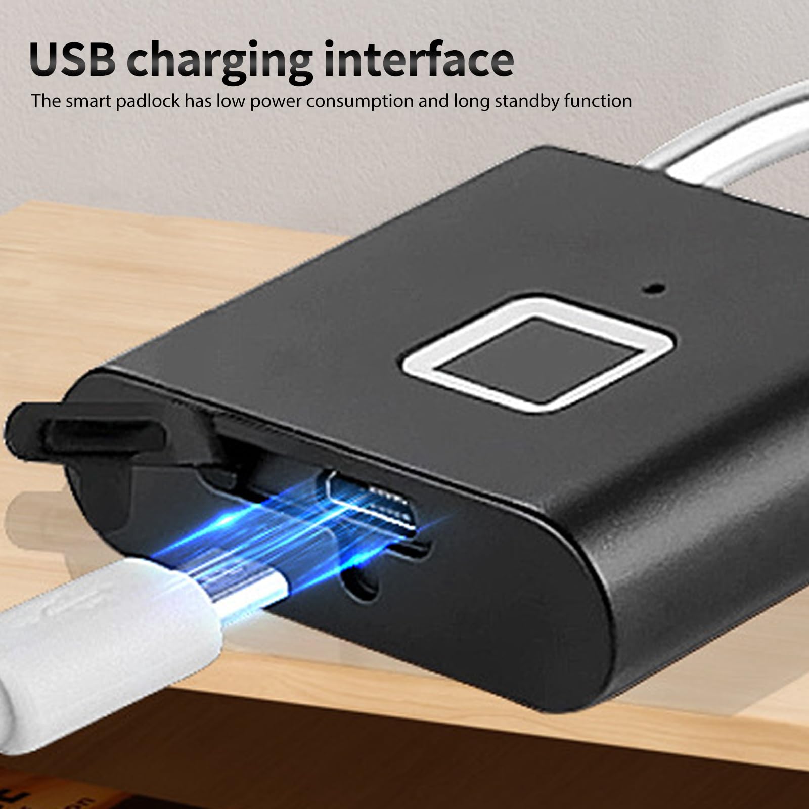 • USB charging function: the intelligent padlock has low power consumption and a long standby function. The locking and unlocking time is unlimited. Fully charged can support a standby time of more than half a year and can be unlocked about 3000 times.