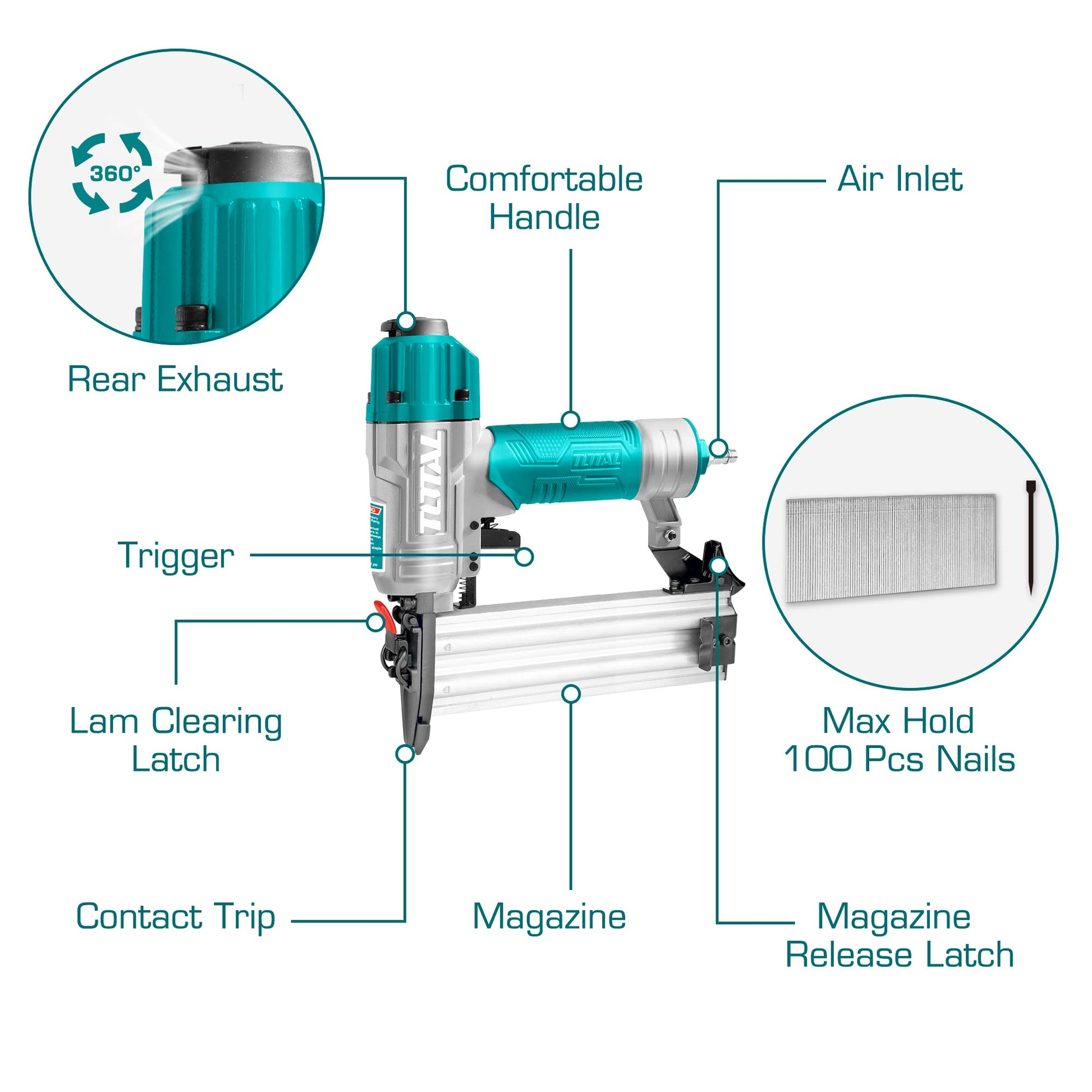 TOTAL Brad Nailer with 1000 Pcs Brad Nails Air-Powered Compatible with 5/8" to 2" Nails,TAT83501