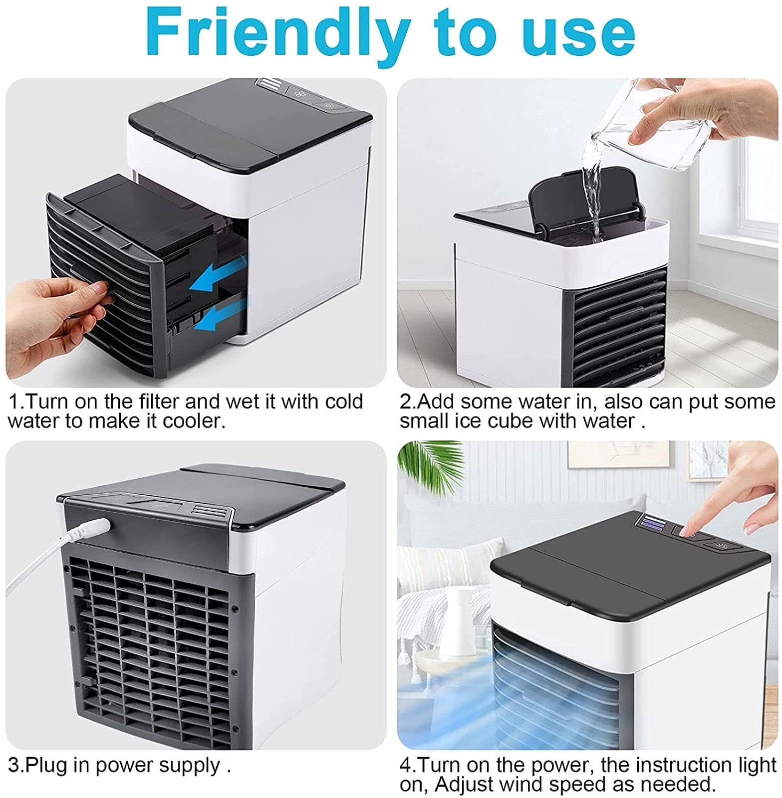 • 【4 in 1 Multi Powerful Function】This air conditioner fan is not only an air cooler, humidifier and purifier, but also a small portable desk fan that helps us stay away from dry air, dust and heat for a comfortable summer.
