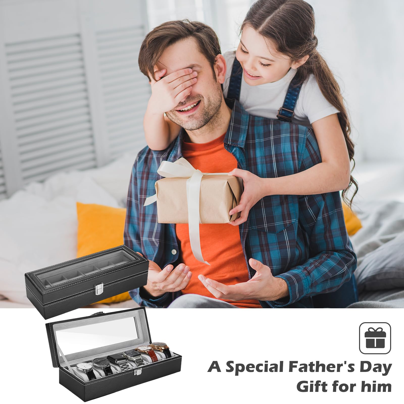 Watch Box Storage Box with 6 Grids, 6 Slots Watch Box Watch Display Box Organiser Watch Box for Men Black