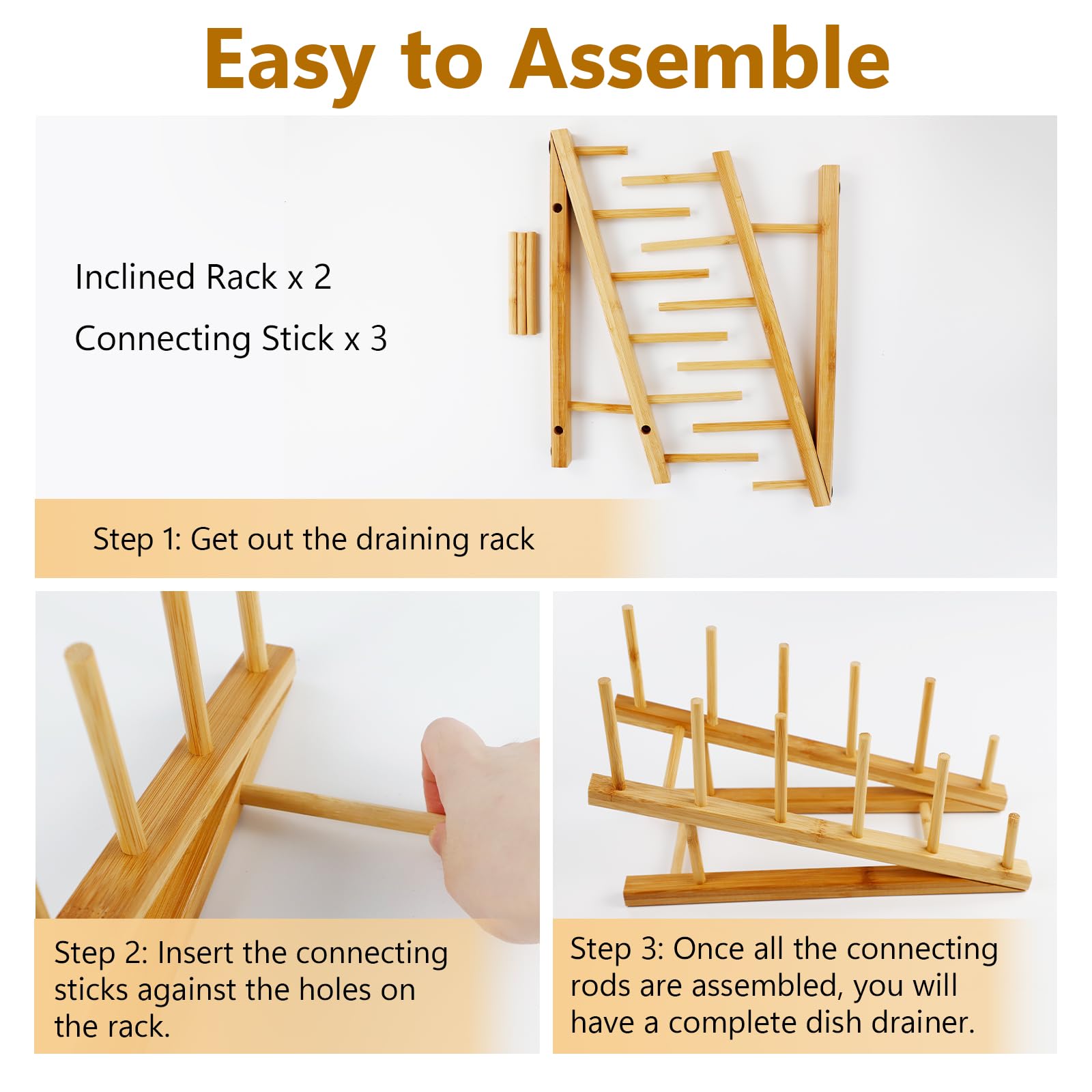 • Bamboo Plate Rack Set - Our kitchen cabinet storage set includes 2 bamboo dish draining racks that hold a total of 10 kitchen utensils. Light weight and good size that is perfect for tight kitchen spaces
