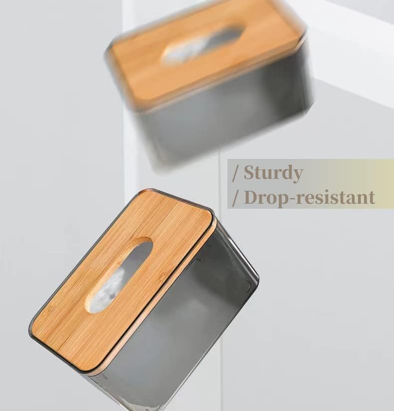 • [ Premium Material ] - The clear tissue box holder is made of natural bamboo cover lid and premium quality clear PET material. The PET material won’t easily crack or splinter, more resistant to falling and more durable