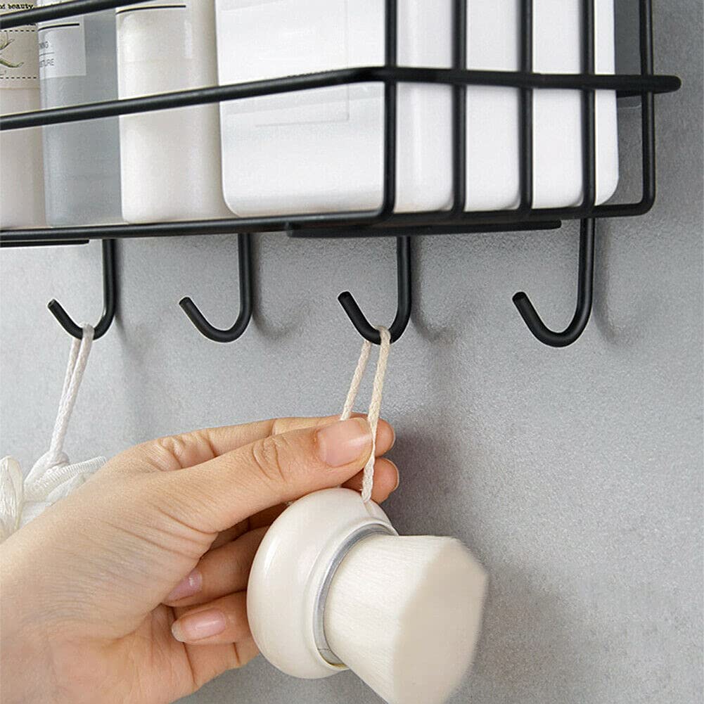 ZIVIK Shampoo Holder Kitchen Organizer Bathroom Shelves with 4 Hook, Hooked Toilet Accessories Storage Shelves Punch-Free Floating Metal Floating Shelf Shower Hanging Basket