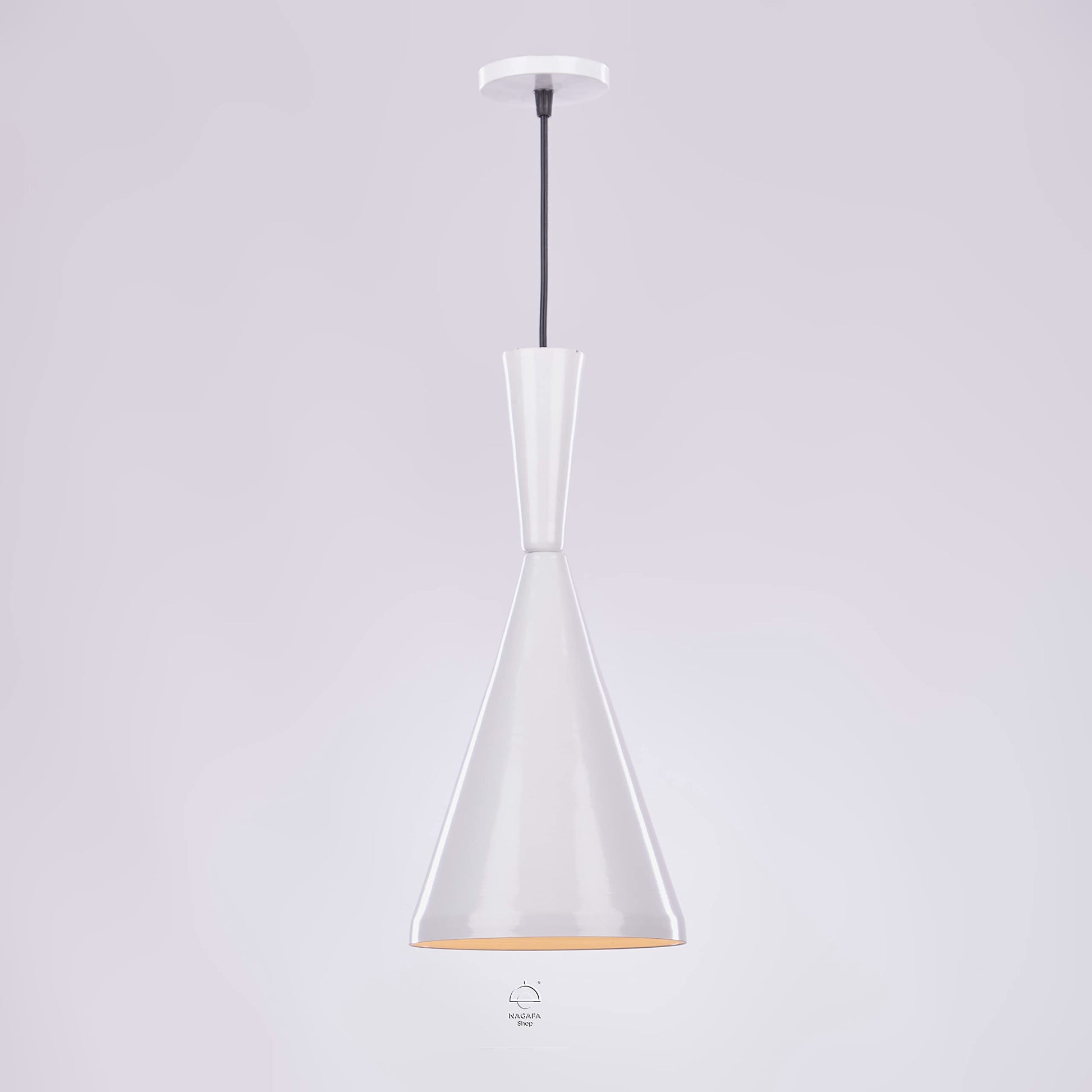 دلايه سقف مودرن كون ابيض من الالومنيوم 1 لمبه من نجفه شوب
