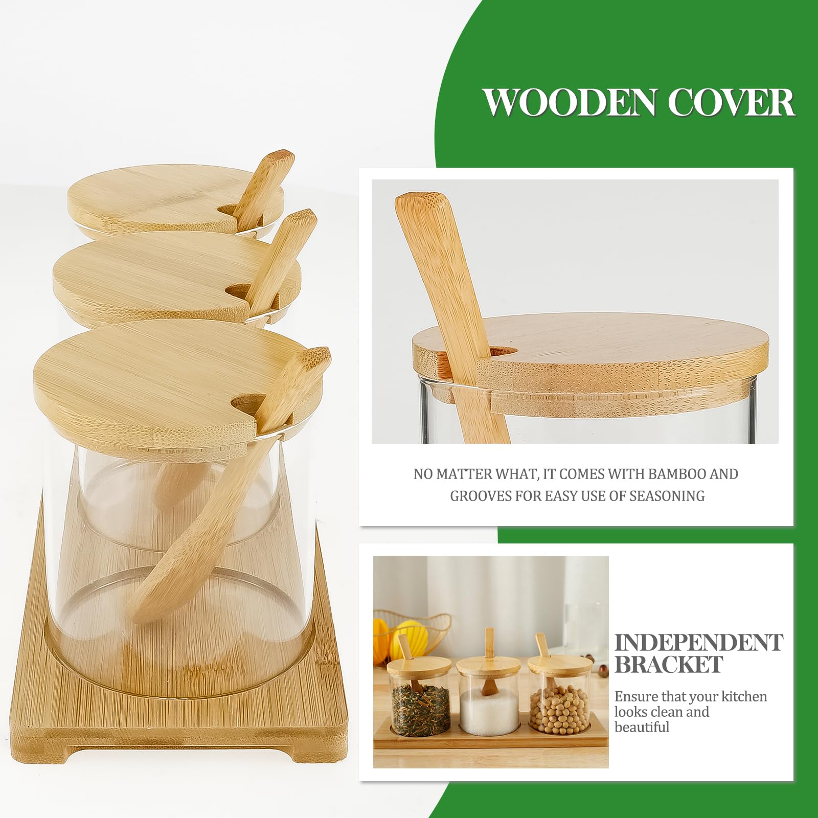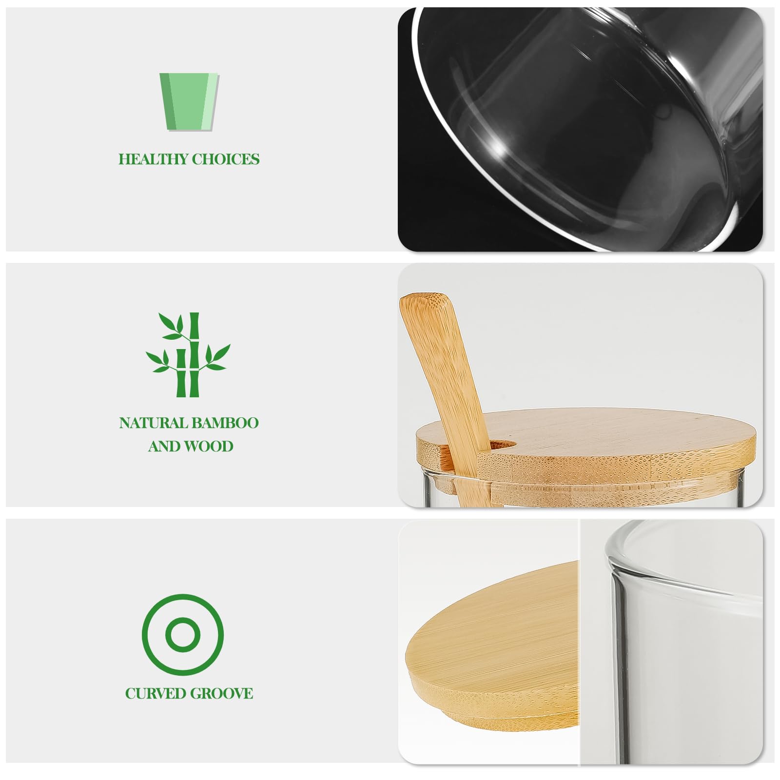 10.2 oz Condiments Container Seasoning Jars, Clear Glass Condiment Pot Set with Lids and Spoons, Tea Coffee Sugar Canisters Glass Spice Box, Refillable Seasoning Pot Bowl for Kitchen, Counter