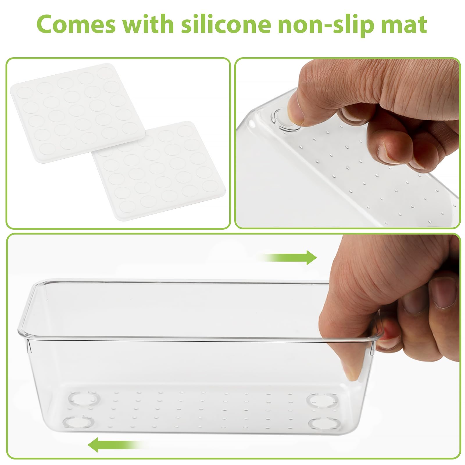 • Stackable and non-slip: These organizer drawers storage can be stacked together to better save storage space when they are not in use. And each bottom is equipped with anti slip pads to prevent them from moving in the drawer.
