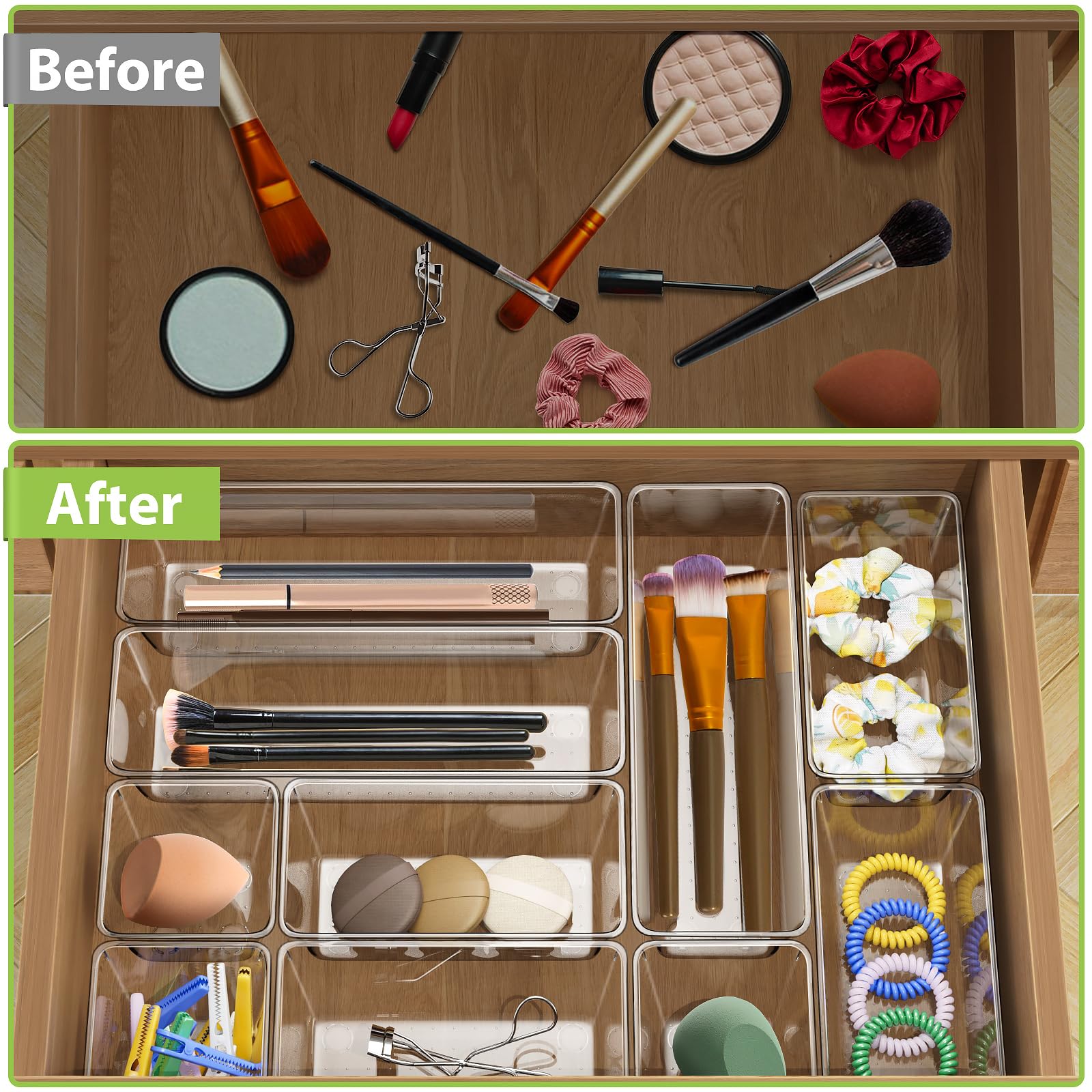 • Clear: Each plastic drawers organizer is supported by durable clear plastic, which helps you partition multiple available spaces without changing the original design of your drawers. Save you time organizing and searching for items