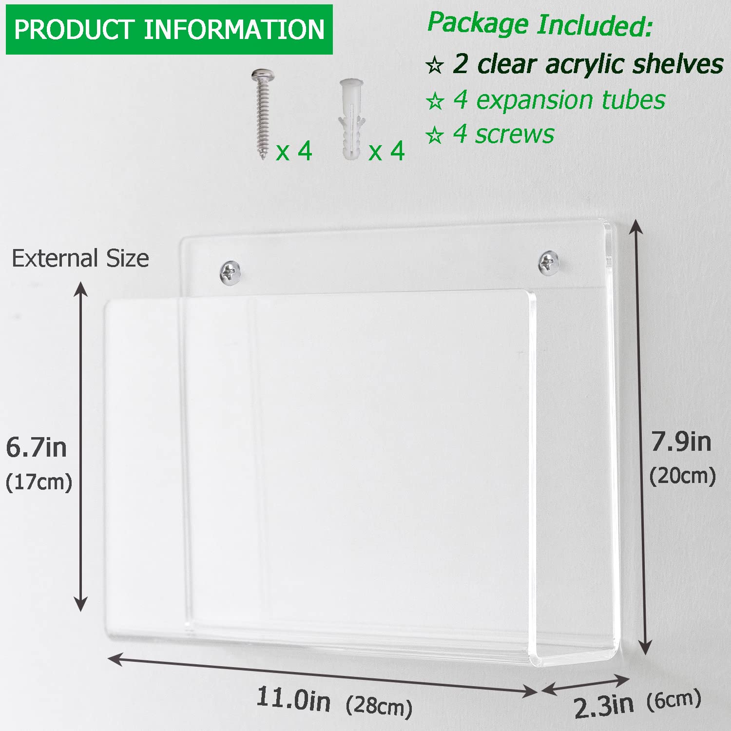 2 Pack Wall Mount Magazine Holder, Clear Acrylic Vertical File Rack and Organizer, Modern Wall-Mounted Bookshelf for Office, Waiting Room, Living Room, and Home Display
