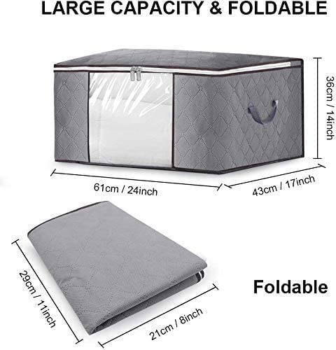 2 Pcs Storage Bag Foldable,Foldable Clothes Storage Bags,Collapsible Storage Bag Organizers,Space Saver Bags,Space Saves Clothes Foldable Clothes Storage Bags for Clothes (Horizontal Style- Grey)
