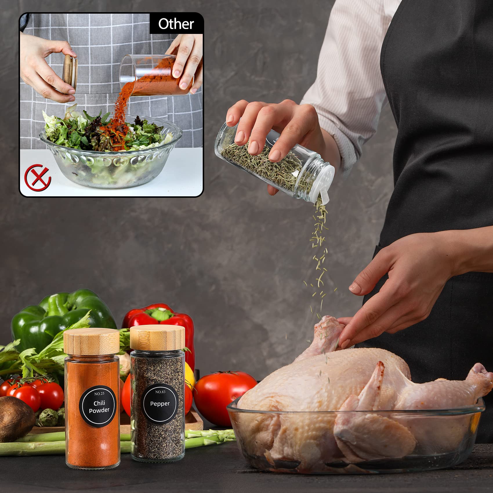 24 Pcs Spice Jars with Bamboo Lids - 4 oz Round Glass Spice Jars with Labels, Minimalist Farmhouse Spice Labels Stickers, Collapsible Funnel, Seasoning Bottles for Spice Rack, Cabinet, Drawer