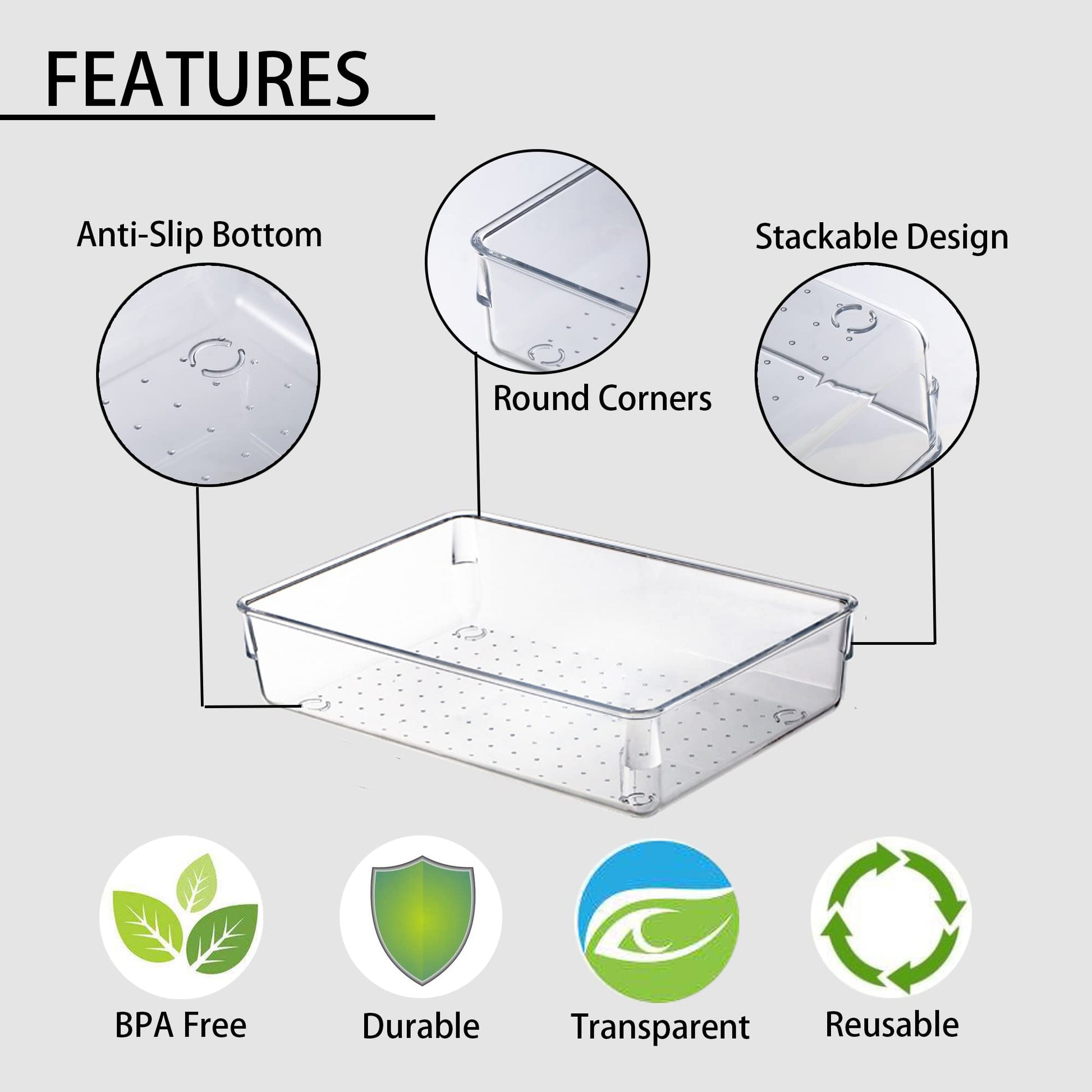 • Multifunctional: Our acrylic bathroom drawer organizers are free to combine and stackable, easy to organize your makeup tools, bathroom supplies, kitchenware utensils, office and craft supplies etc. Save room and make everything neat and organized.