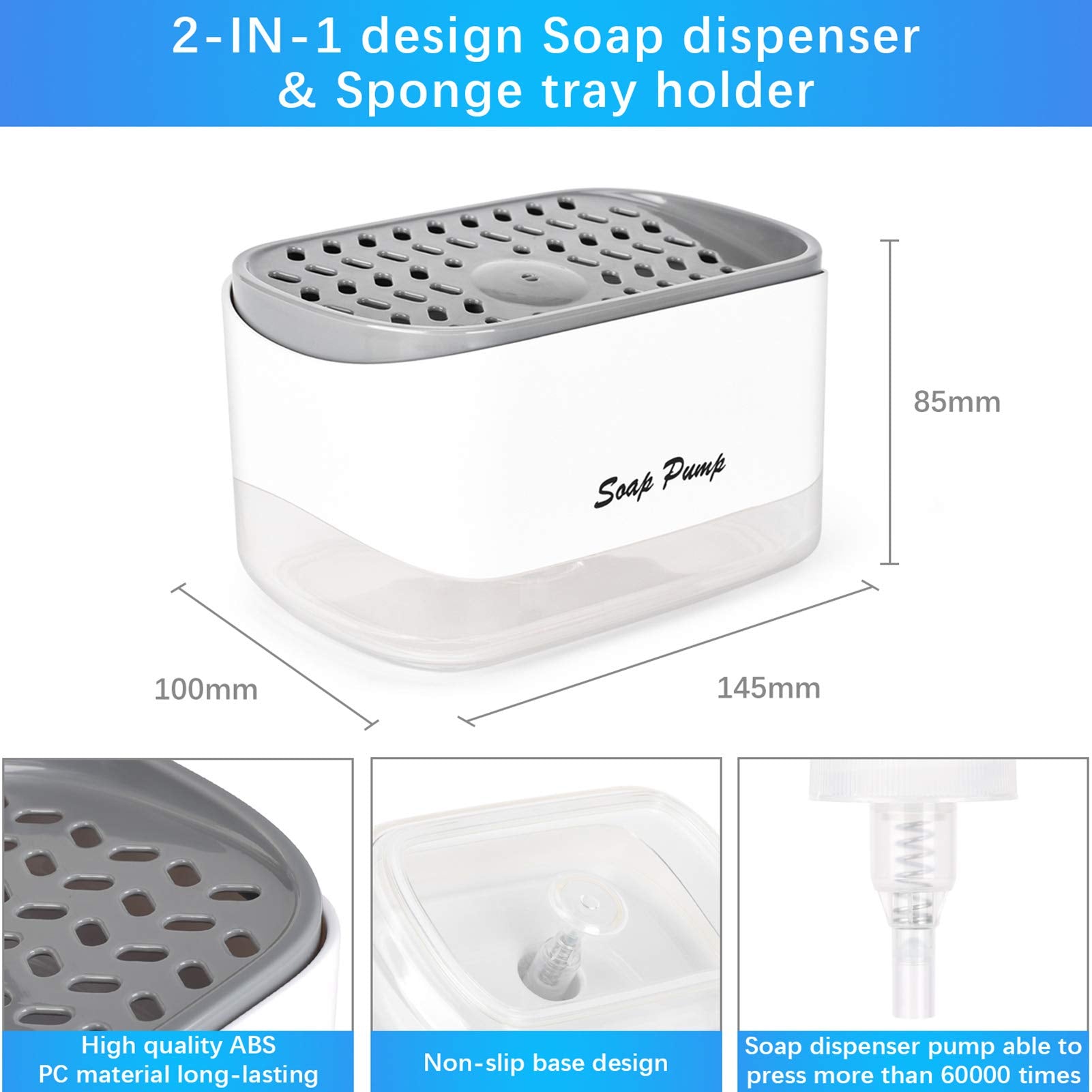 • All-in-One Design: This 3-in-1 soap pump dispenser features a built-in sponge holder for easy access and organization, keeping your sponge neatly stored and ready for use.