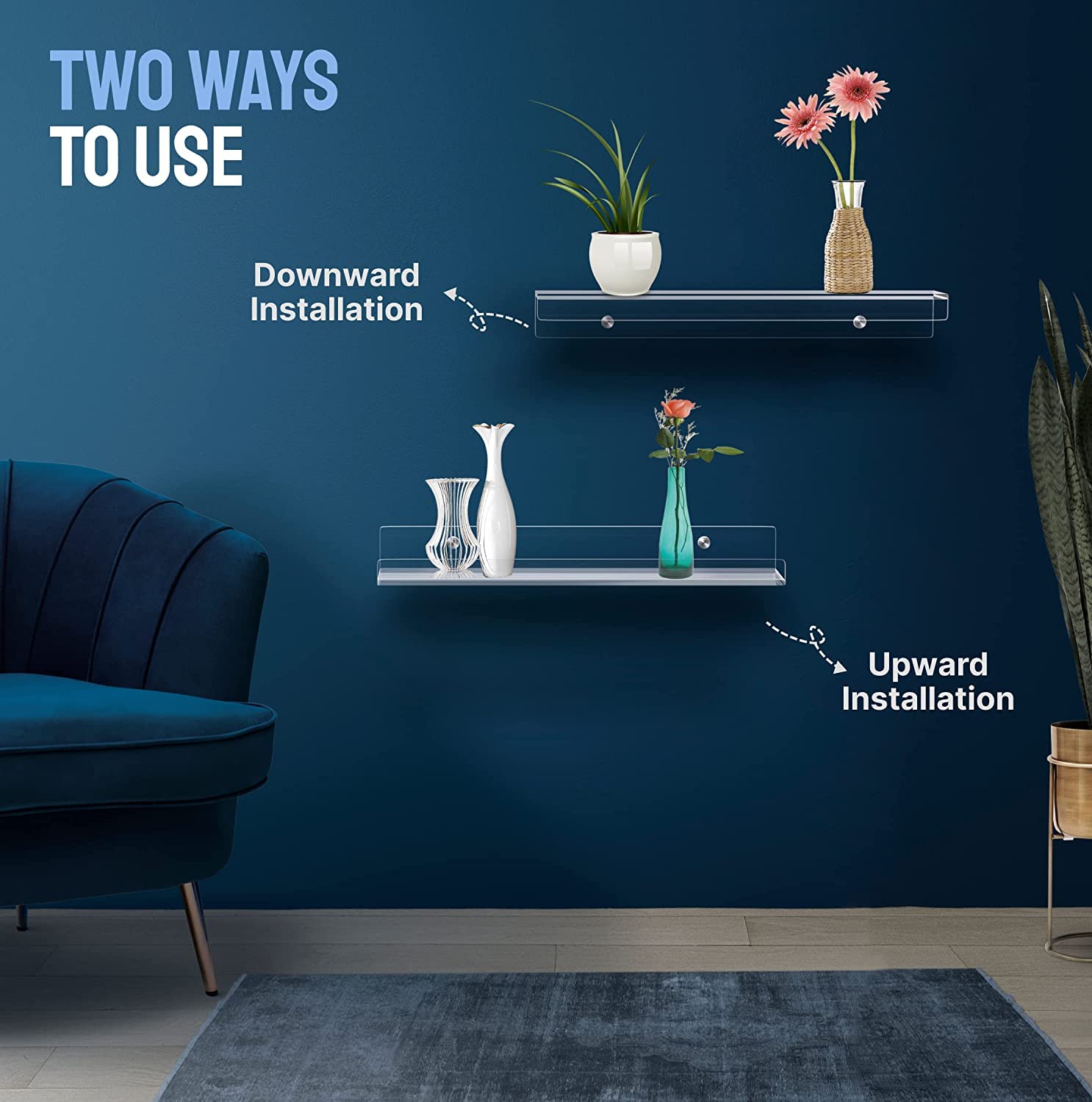 • Invisible Floating Shelf Design: Crafted to blend seamlessly into the wall, these clear acrylic shelves give the illusion of floating while supporting books, candles, toiletries, or small decorative items.