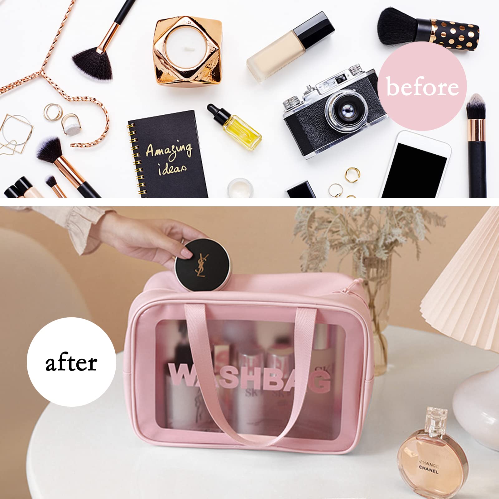 3 Pieces Toiletry Bag for Women and Men, Matte Translucent Makeup Cosmetic Bag with Handy Handle, Water - Resistant Travel Organizer for Accessories (Pink)