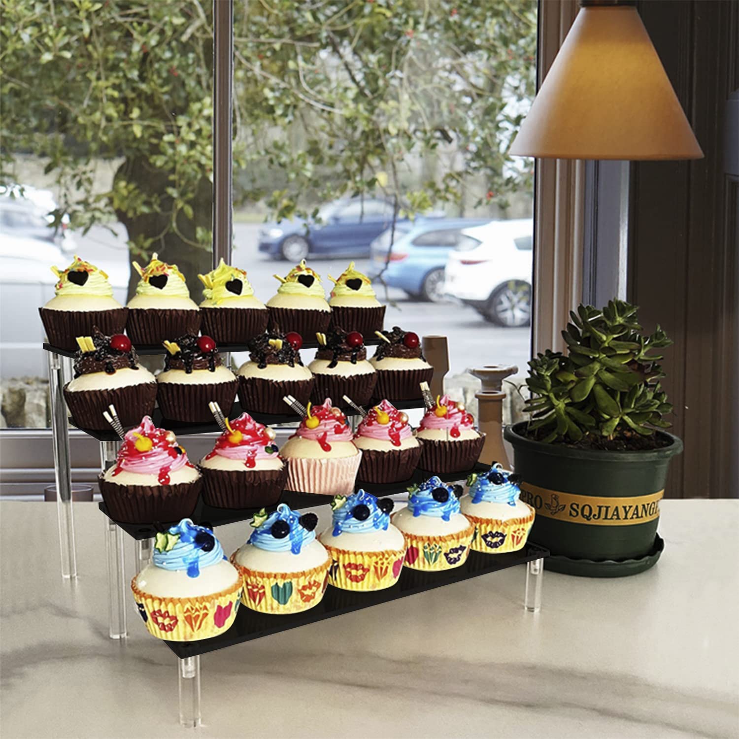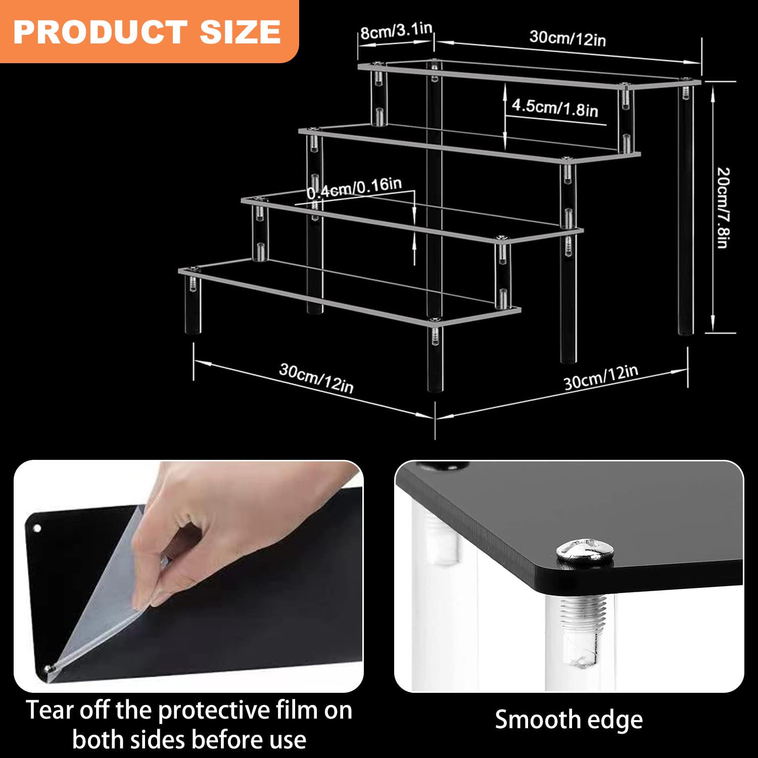 4-Tier Acrylic Display Stand, Black Clear Step Riser Shelf for Perfume Bottles, Pop Figures, Cupcakes, and Product Showcases, Elegant Multi-Level Organizer for Home or Events - Black