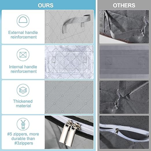• Reinforced Handles for Easy Transport: Sturdy side handles allow for effortless carrying and pulling from shelves, closets, and under-bed storage.