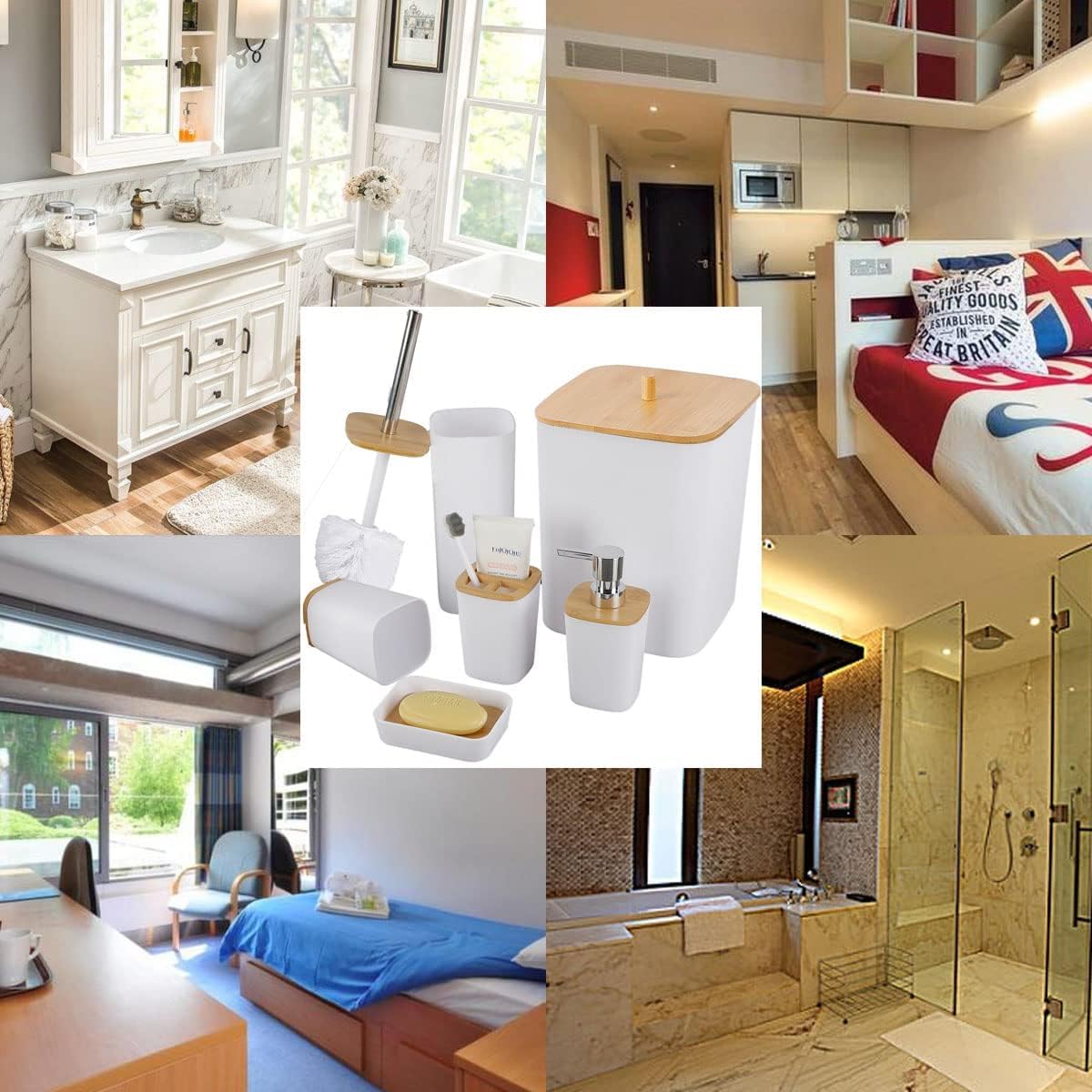 • Complete Bathroom Set: Includes trash can, toothbrush holder, soap dish, soap dispenser, and cup — all essentials in one set.